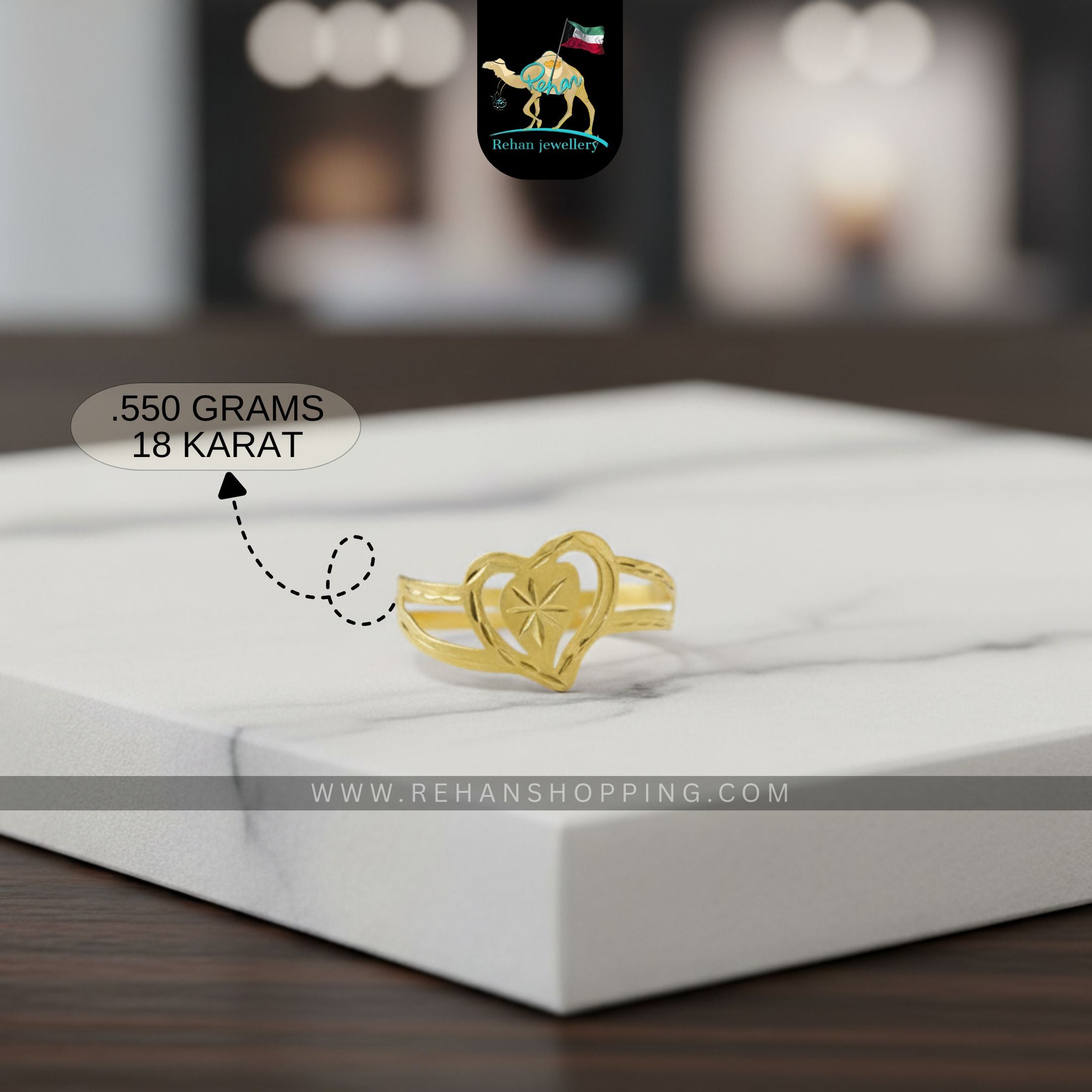Express love and elegance with this 18K Gold Heart Cut Ring, crafted from 0.550 grams of pure 18K gold. The delicate heart motif paired with a star-engraved center makes this ring a true symbol of affection and charm.