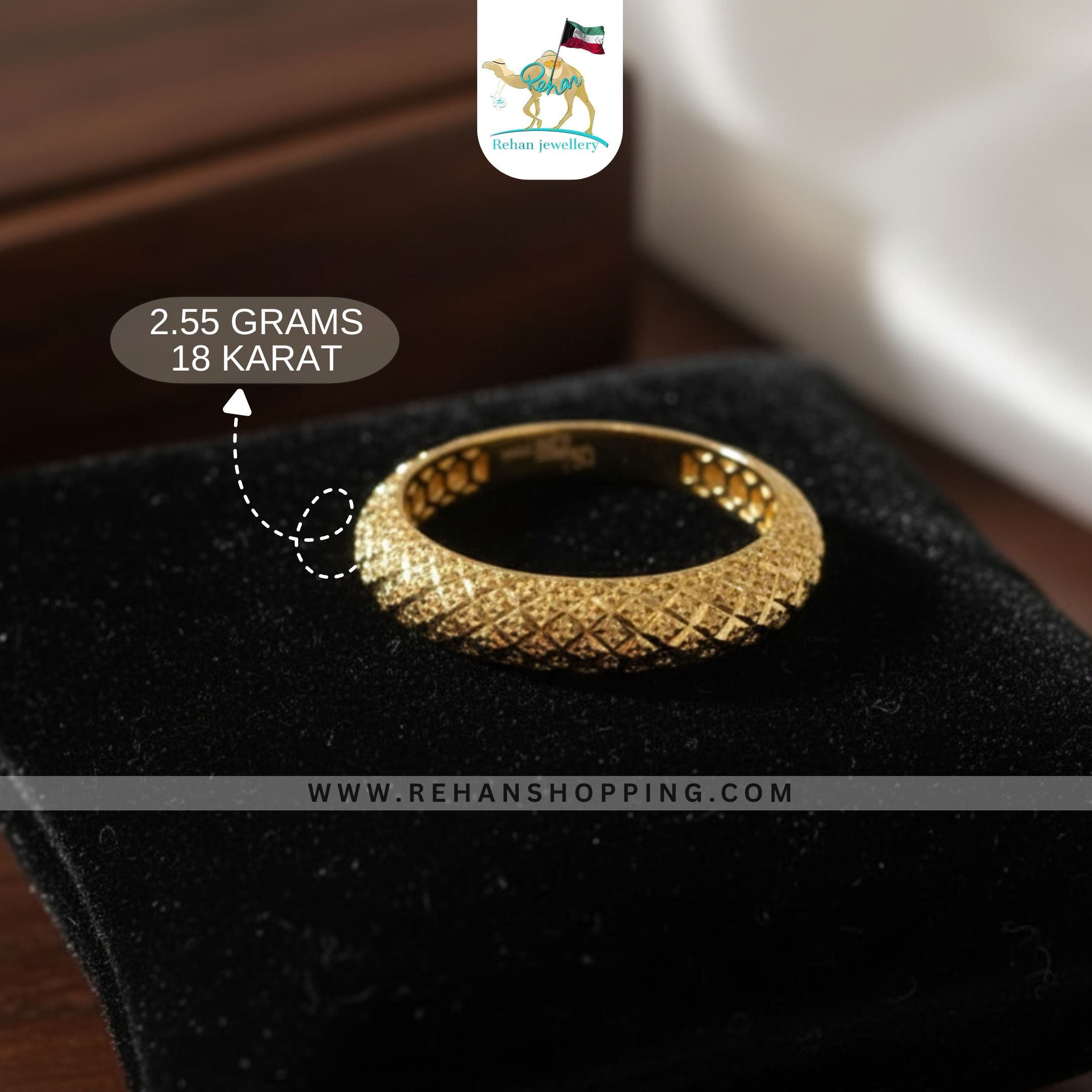 18K Gold Textured Dome Ring – 2.55 Grams | Elegant Diamond-Cut Design | Rehan Jewellery