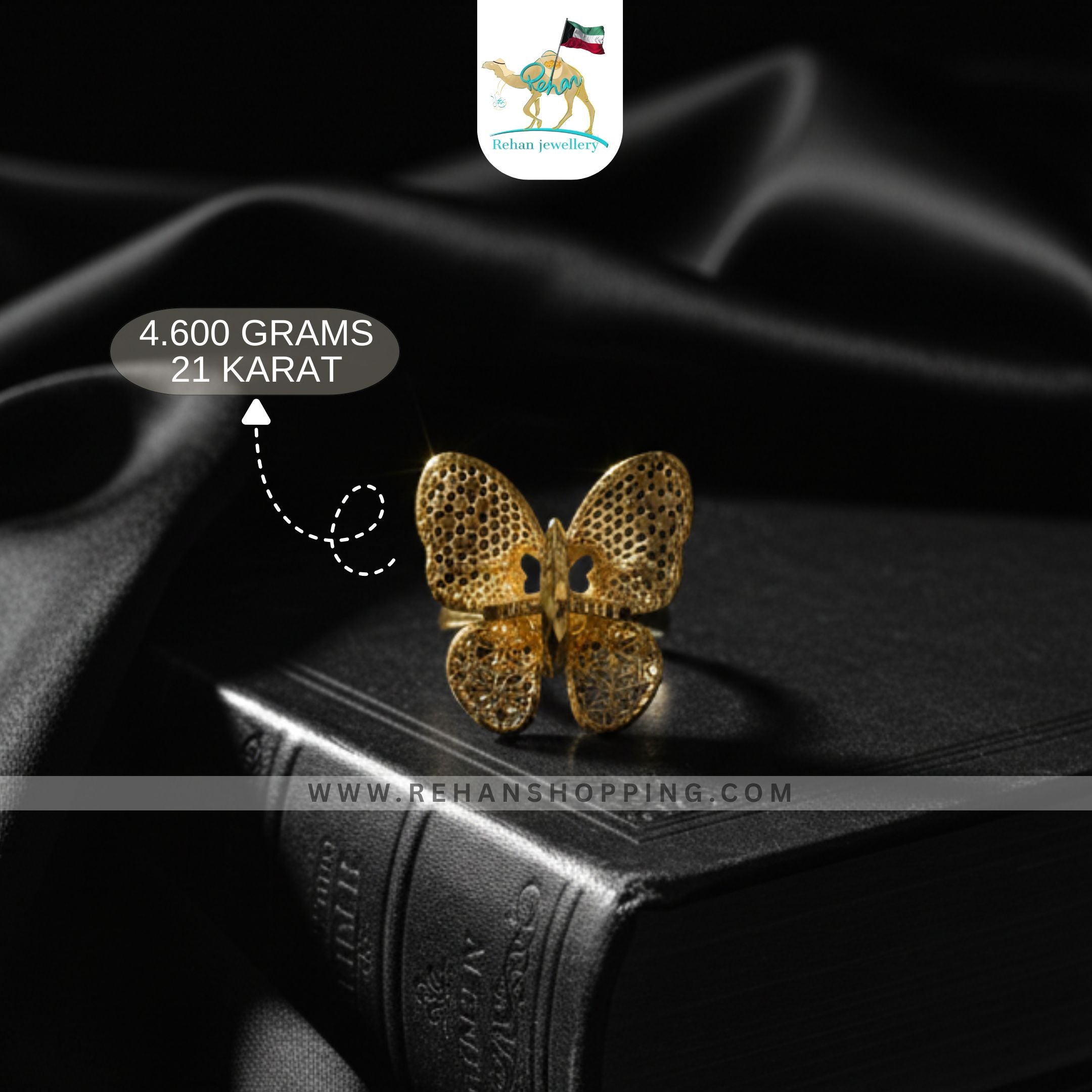21K Gold Butterfly Ring – 4.60 Grams | Elegant Filigree Gold Ring for Women | Rehan Jewellery