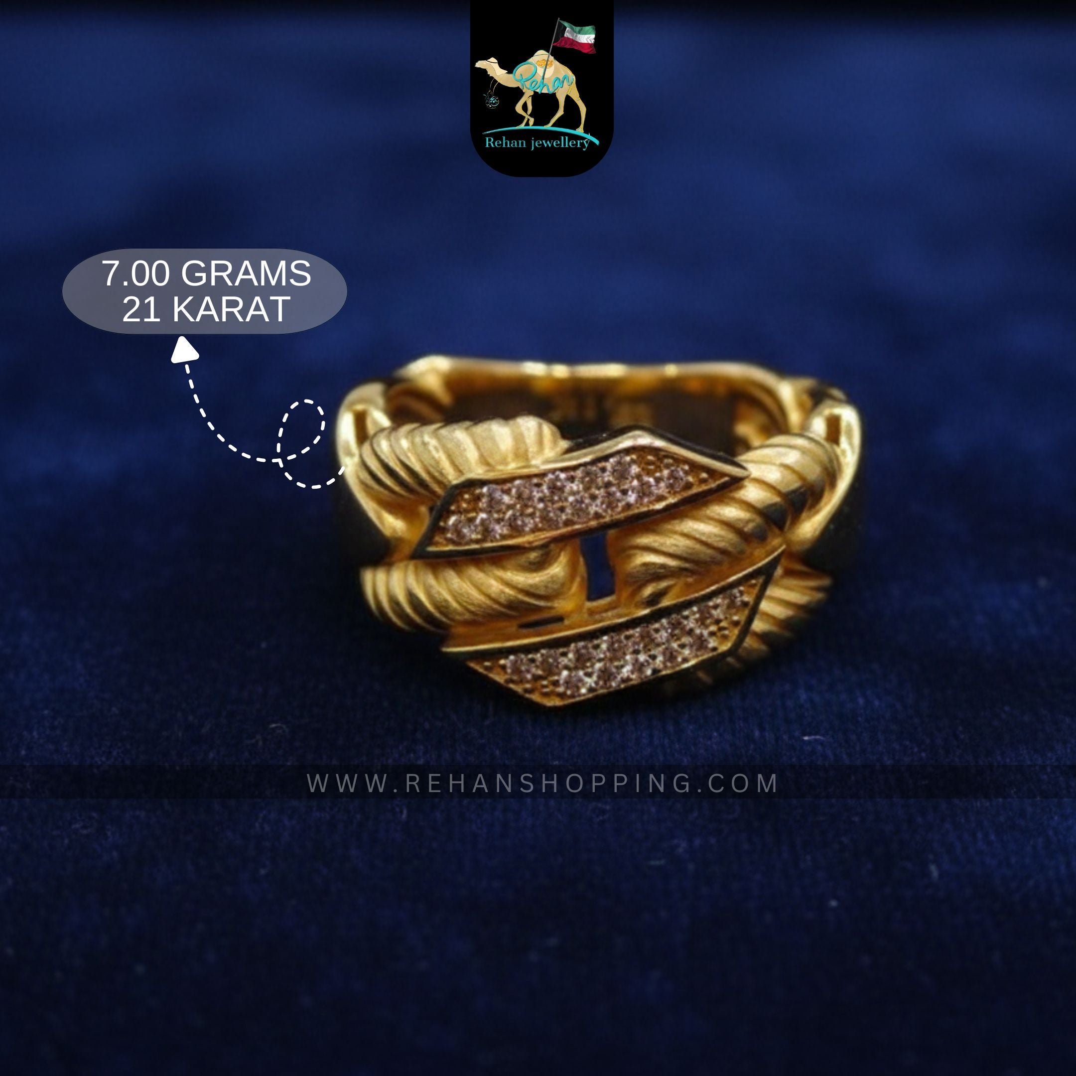 Make a bold statement with this 21K Gold Diamond Cut Luxury Ring by Rehan Jewellery.