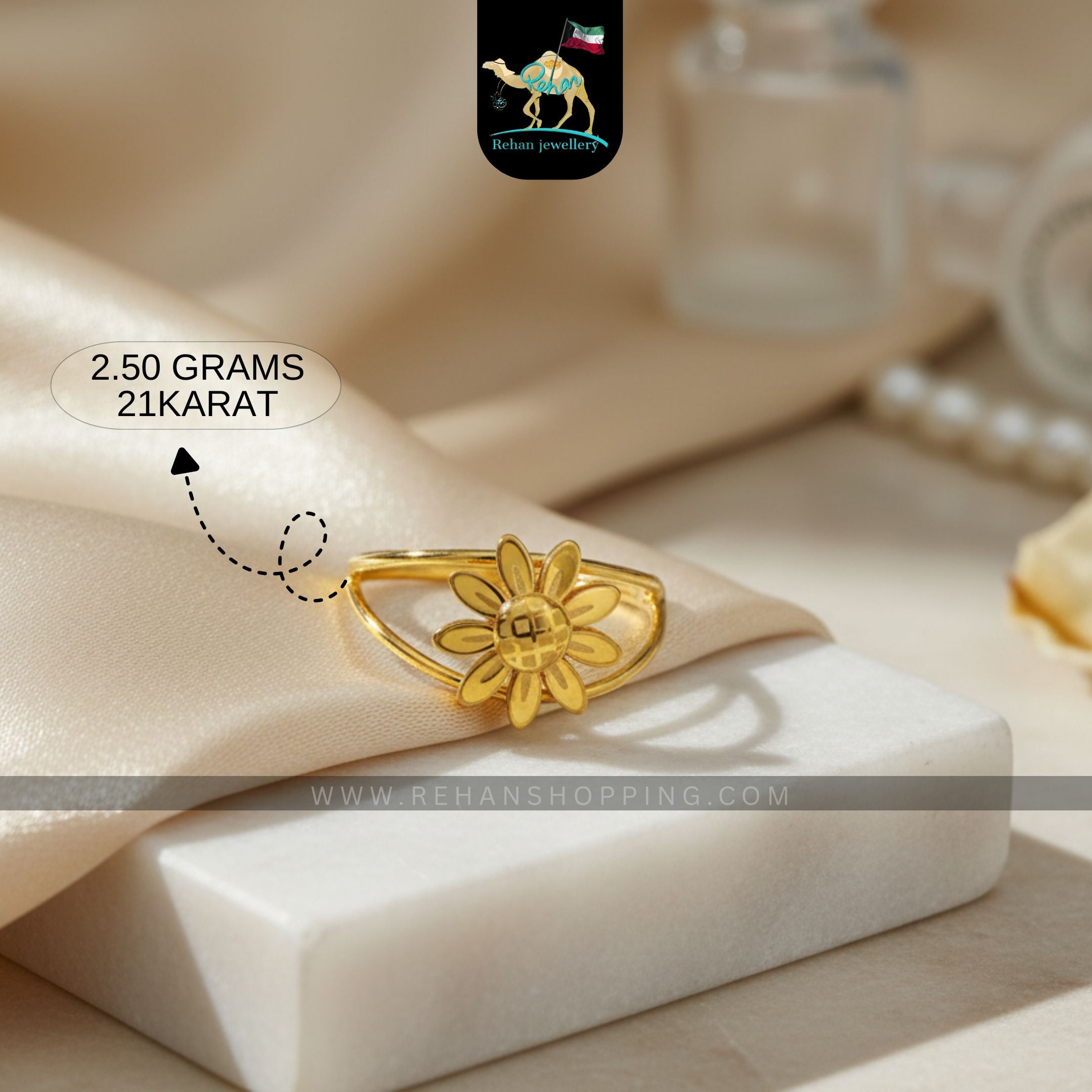 Embrace timeless elegance with this 21 Karat Gold Floral Ring by Rehan Jewellery. Weighing 2.50 grams, this beautiful ring features a delicate flower motif crafted with precision to highlight feminine grace and modern simplicity.