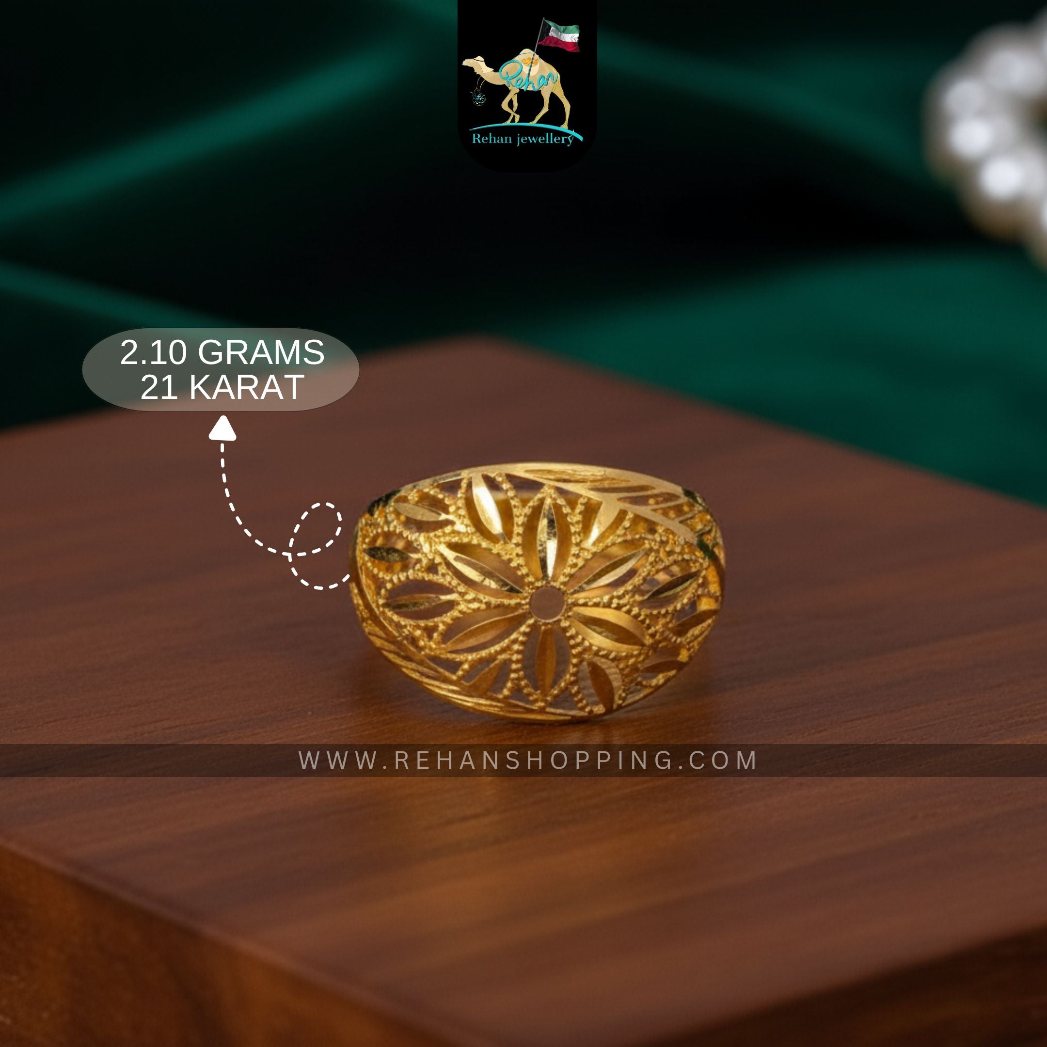 21K Gold Floral Filigree Ring – 2.10 Grams | Lightweight Elegant Design | Rehan Jewellery