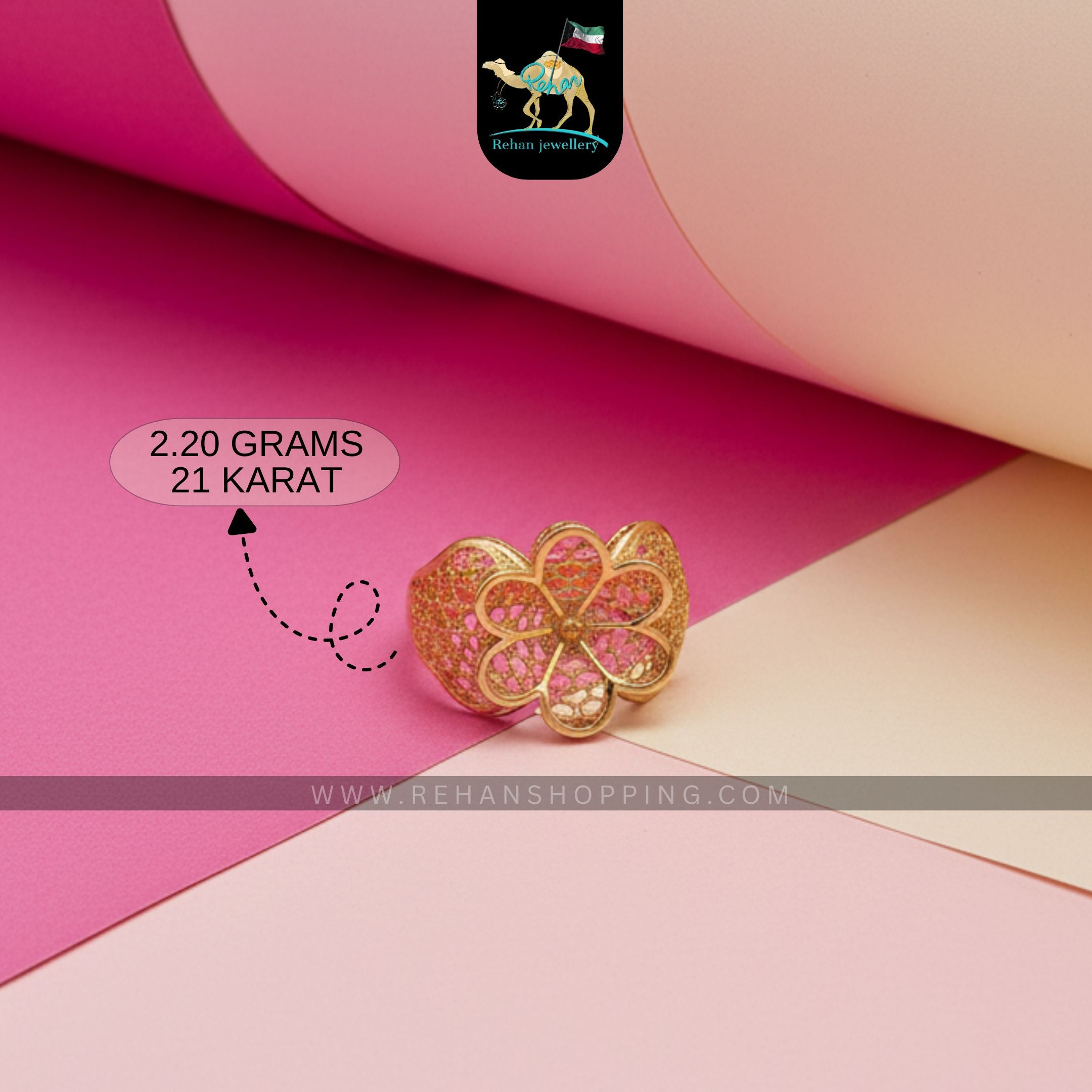 Add a touch of grace and sophistication to your collection with this 21K Gold Floral Filigree Ring, weighing 2.20 grams. Featuring a delicate flower motif with a soft pink enamel finish, this handcrafted ring blends tradition with modern charm. Perfect for festive occasions or daily elegance, it’s a symbol of femininity and timeless beauty.