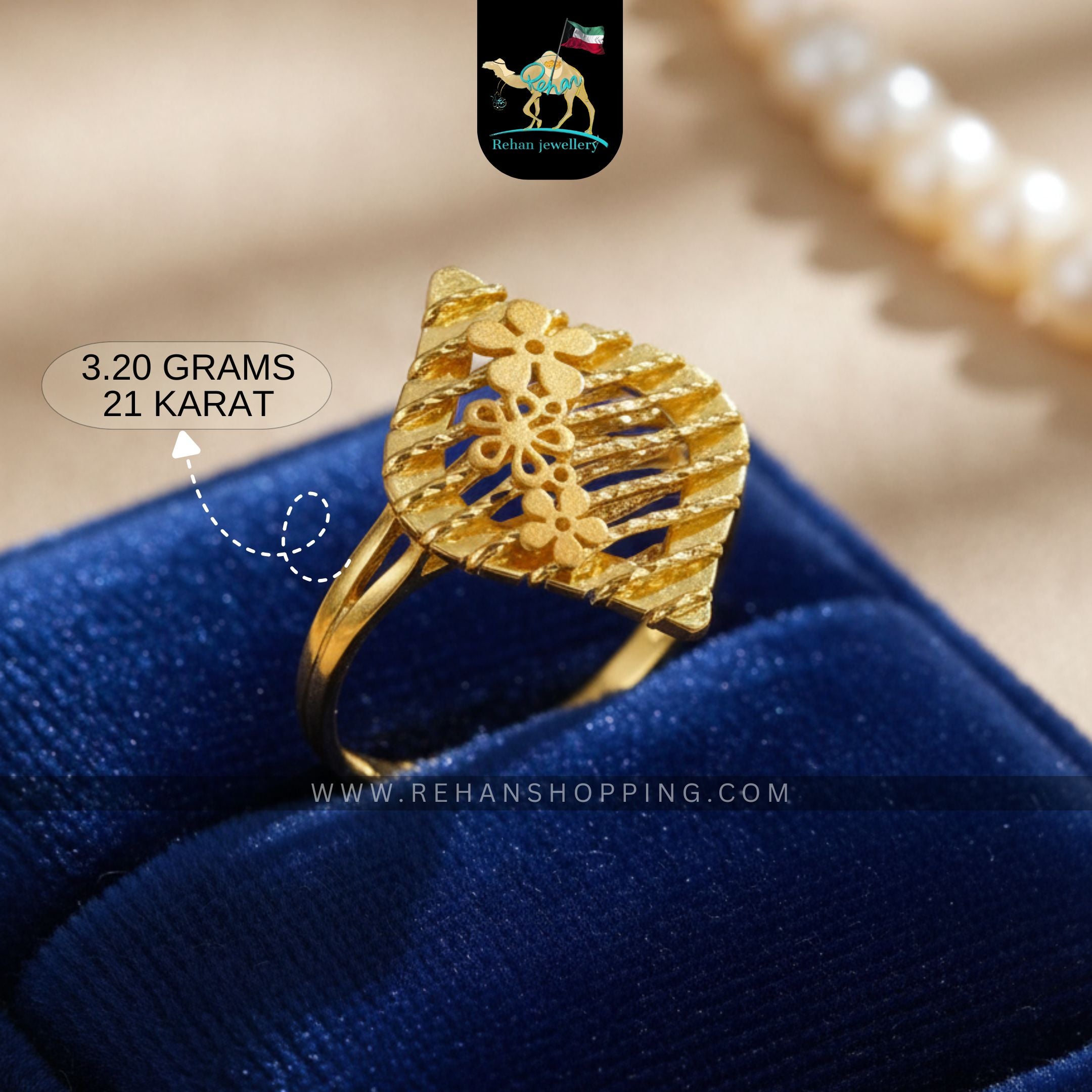 21K Gold Floral Stripe Ring – 3.20 Grams | Elegant Handmade Gold Ring for Women