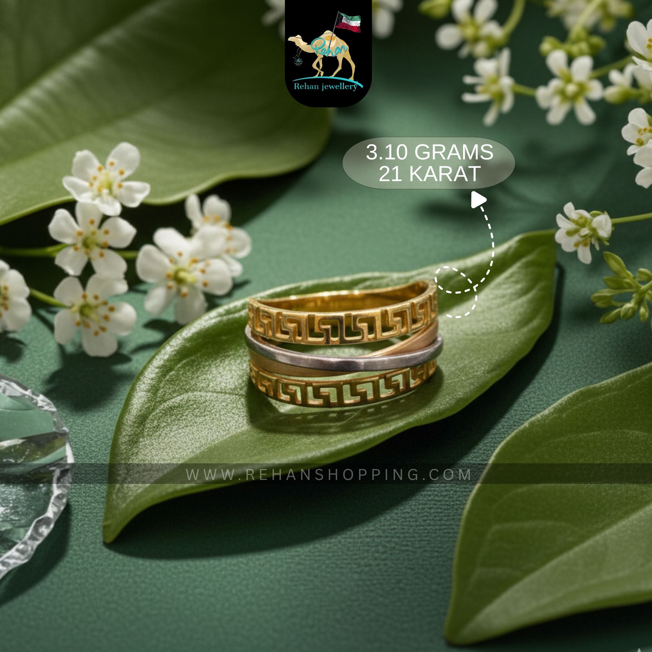 Embrace timeless elegance with this exquisite 21K Gold Greek Pattern Dual-Tone Ring from Rehan Jewellery Kuwait.