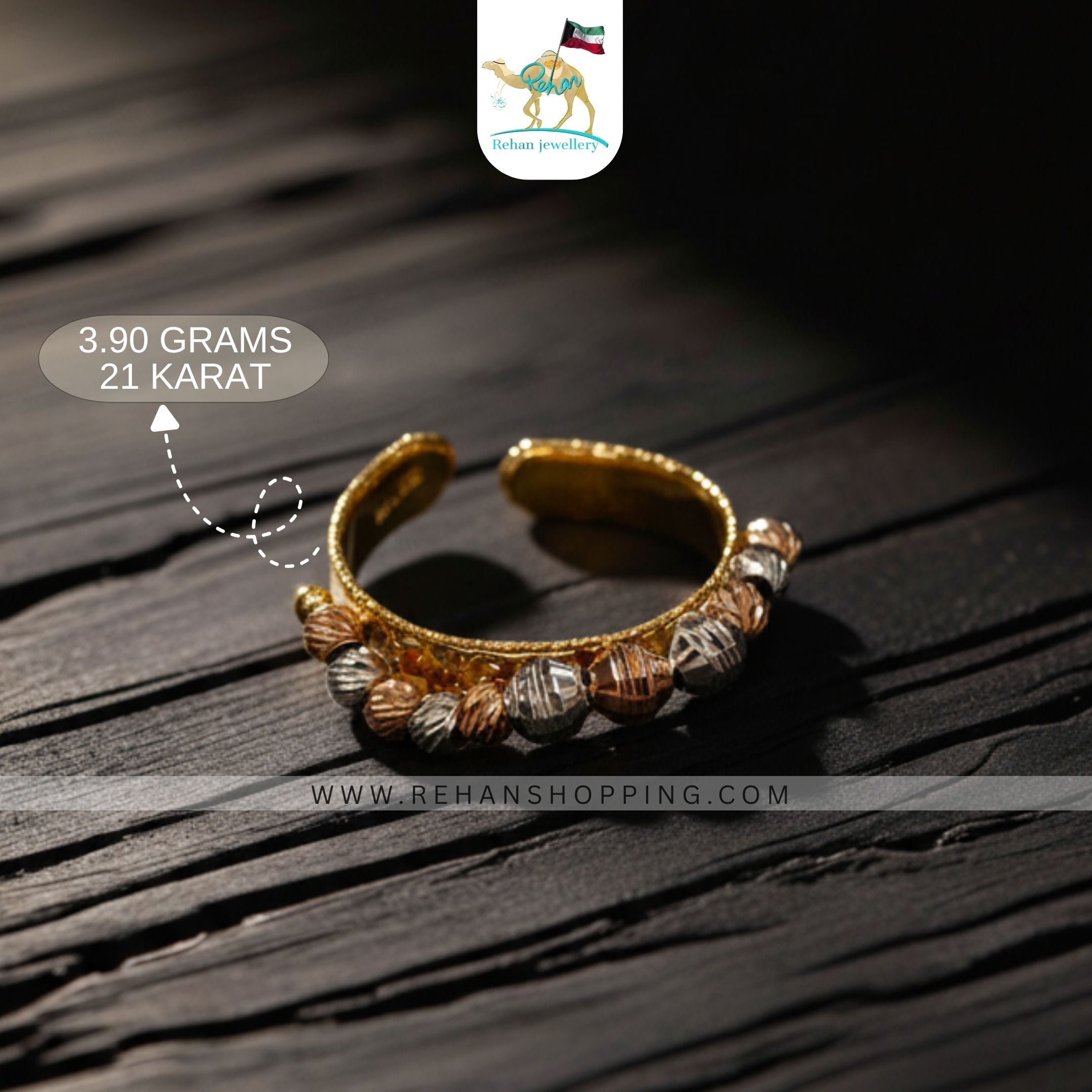 Elevate your elegance with this stunning 21K Gold Multi-Tone Beaded Open Ring from Rehan Jewellery Kuwait.