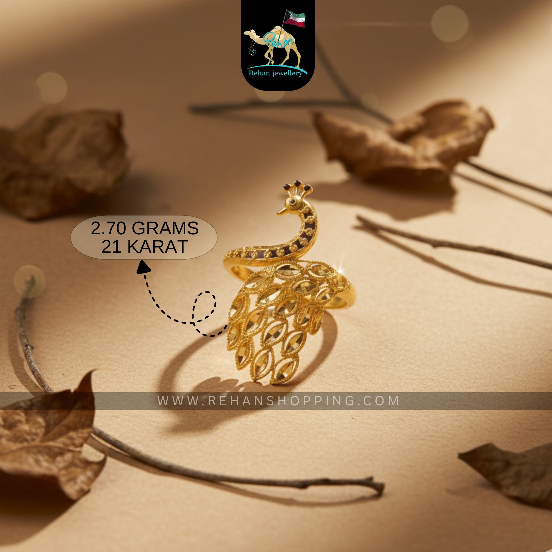 Unveil timeless elegance with this 21K Gold Peacock Ring, weighing 2.70 grams. Inspired by the majestic beauty of the peacock, this ring features intricate filigree feather patterns and delicate detailing that radiate sophistication. Its unique design symbolizes grace, beauty, and confidence — a perfect choice for special occasions or as a luxurious everyday statement piece.