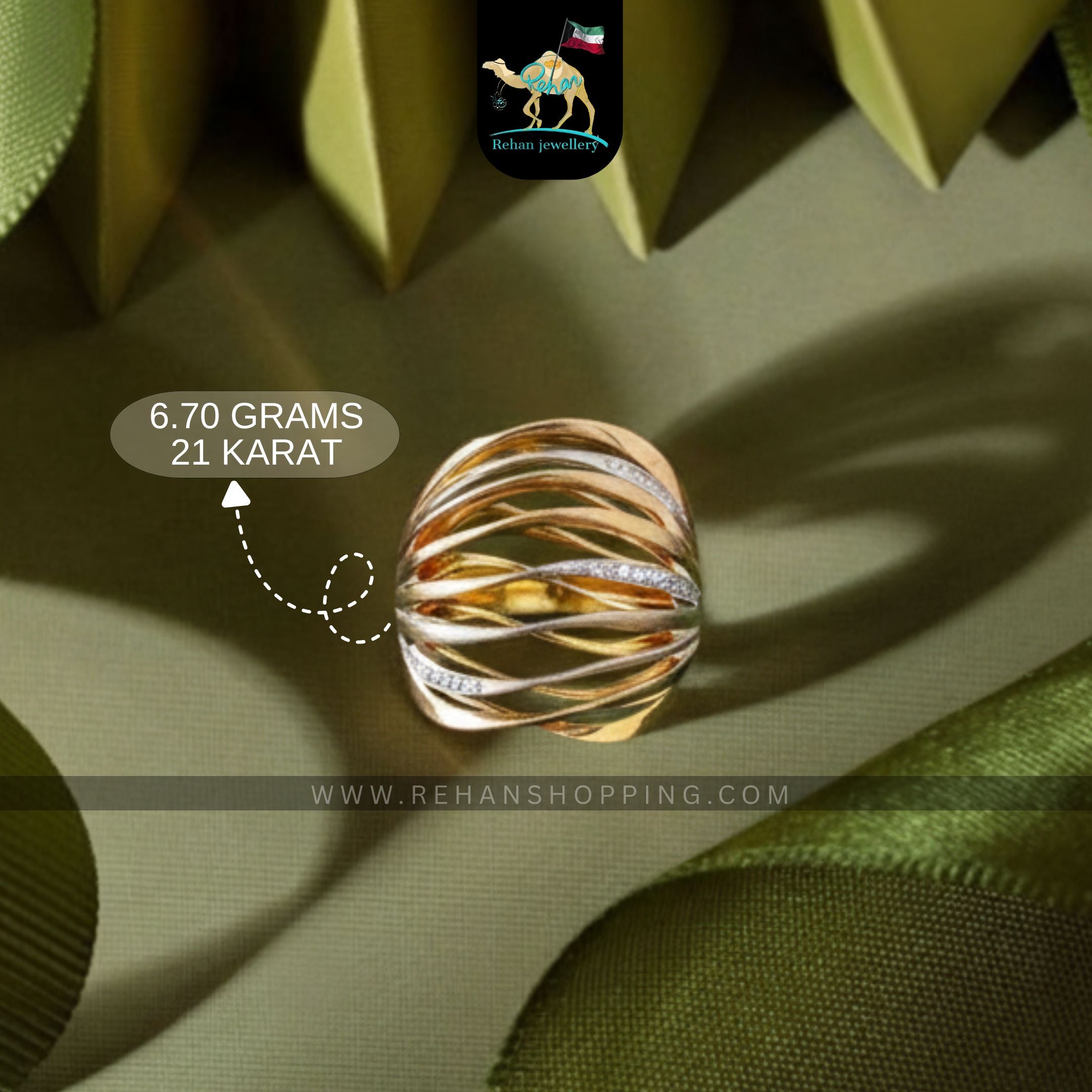 Make a bold statement with this 21K Gold Swirl Wave Statement Ring from Rehan Jewellery Kuwait.