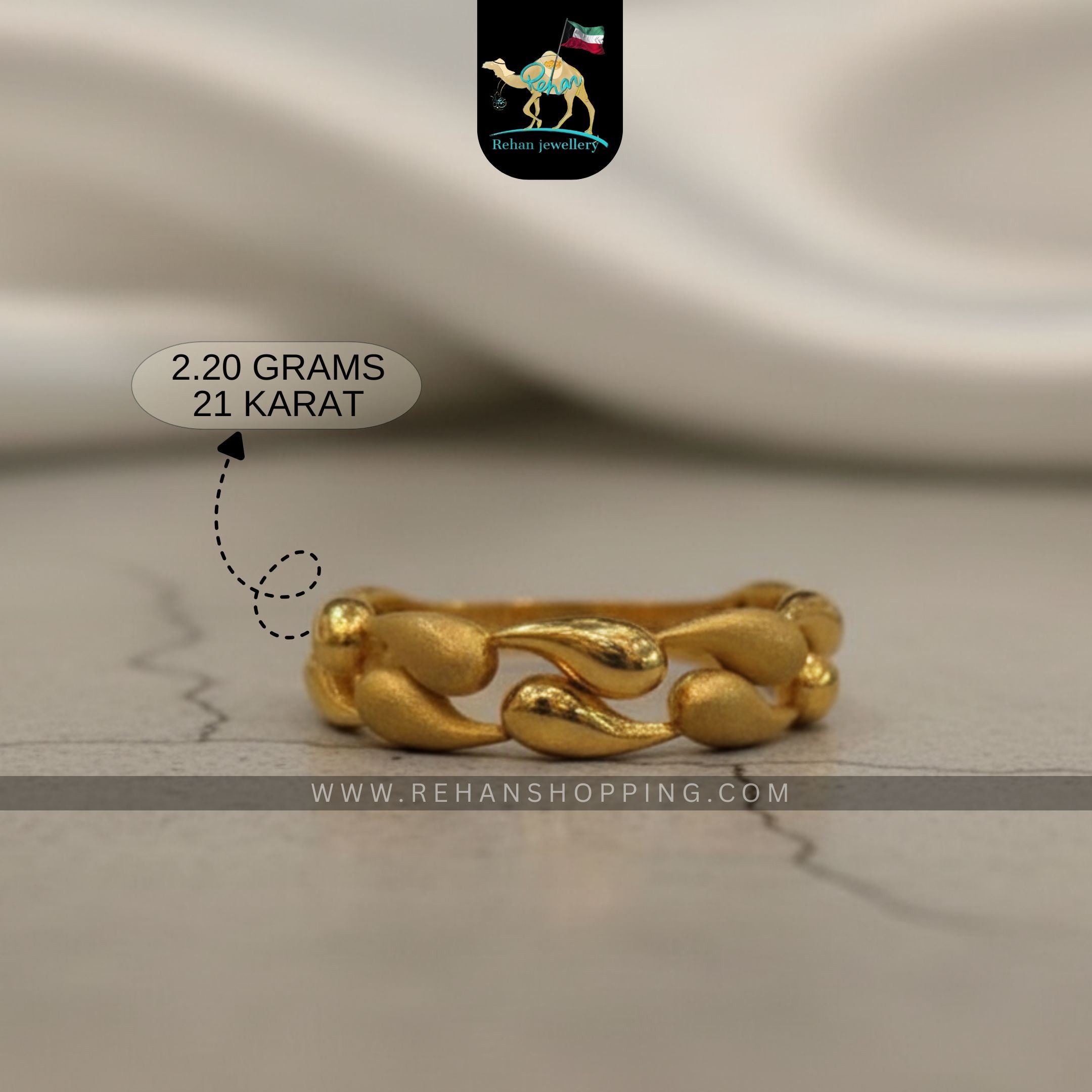 Discover timeless charm with this 21K Gold Teardrop Link Ring, weighing 2.20 grams. Crafted with alternating matte and glossy teardrop shapes, this artistic design brings together contemporary style and traditional gold elegance. Lightweight yet luxurious, this ring is perfect for both daily wear and special occasions. Designed by Rehan Jewellery, it reflects exquisite craftsmanship and pure sophistication.