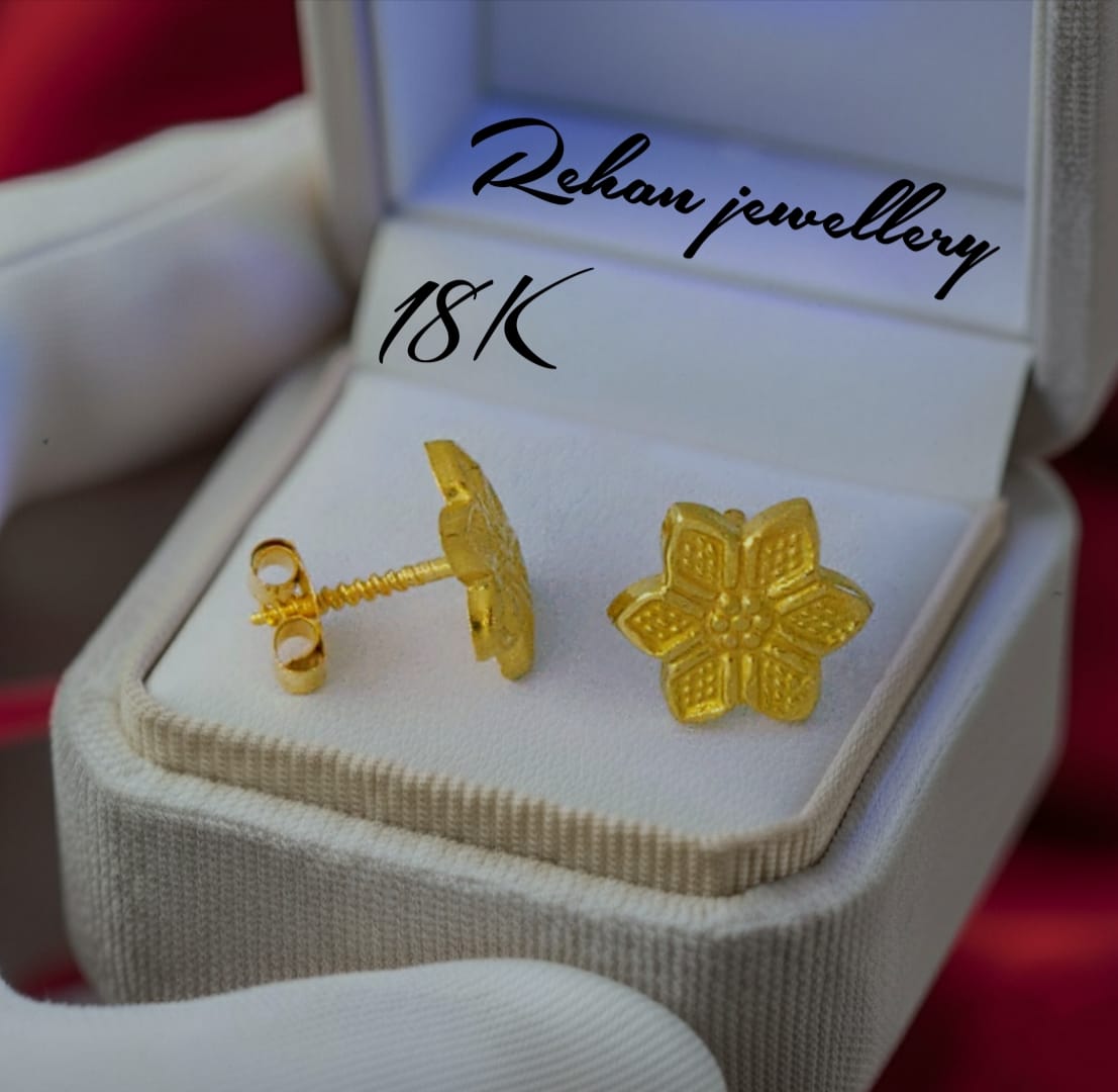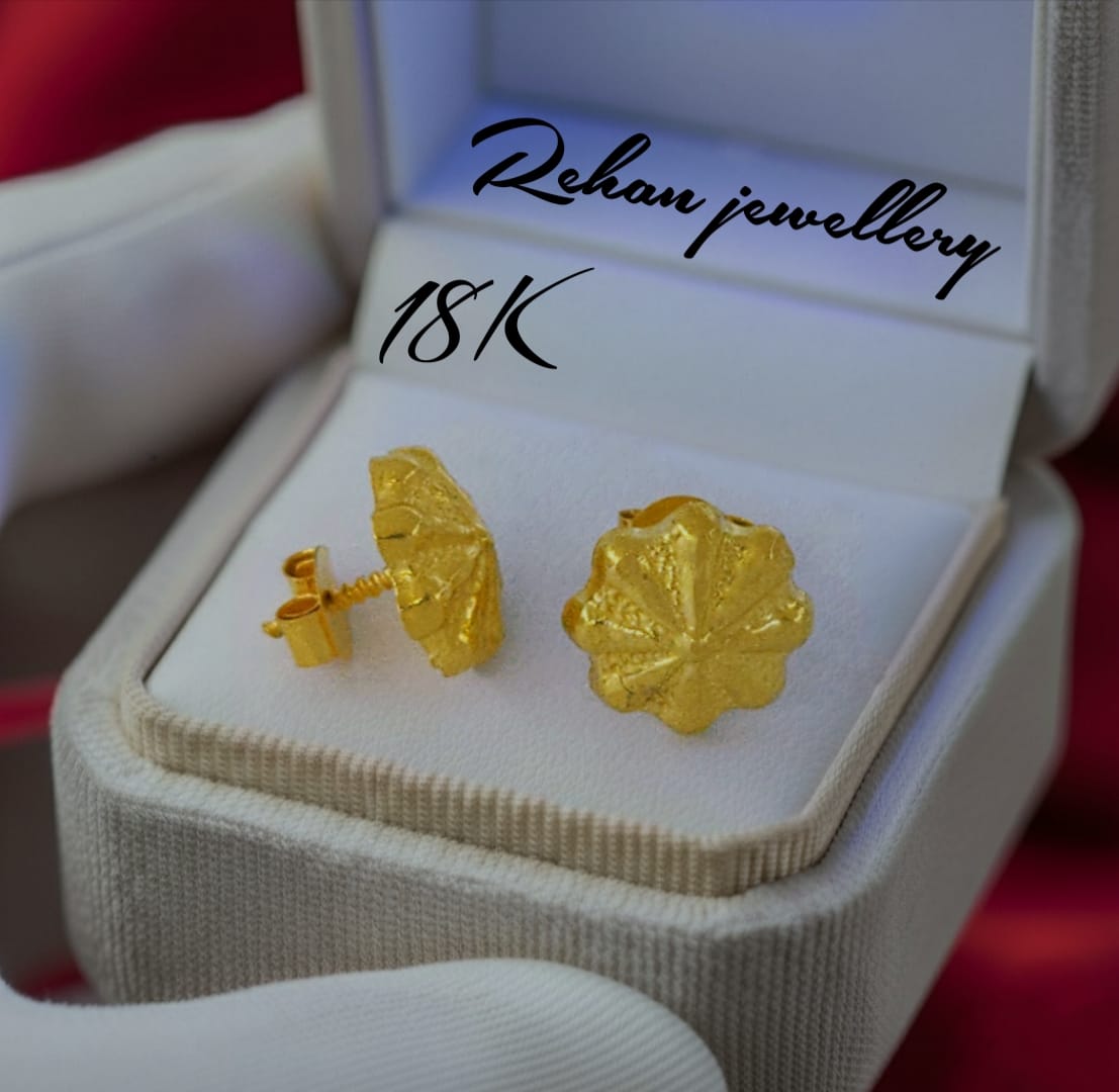 Inspired by nature, shaped for elegance — our Floral 18K Gold Stud Earrings combine subtle charm with luxury. Perfect for everyday elegance or a thoughtful gift for a loved one. Discover the beauty of simplicity at Rehan Jewellers.