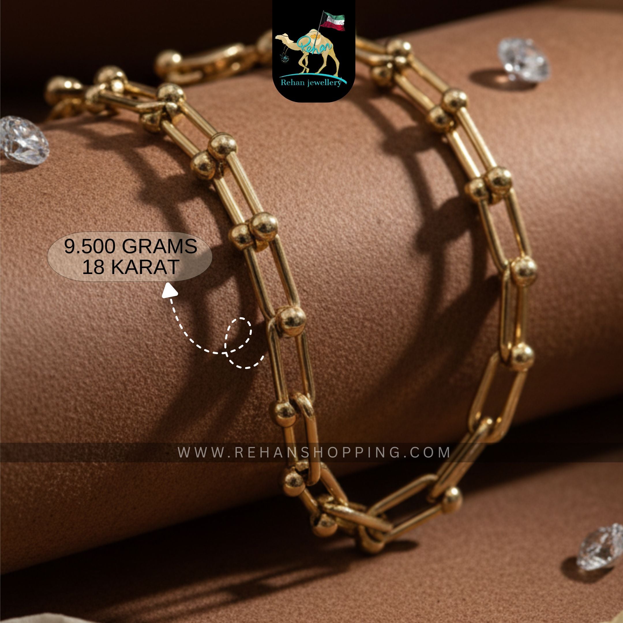 Crafted from pure 18K gold, it showcases the premium craftsmanship of Rehan Jewellery, making it a timeless statement piece that complements every outfit. Lightweight yet luxurious, this bracelet is designed for those who appreciate true elegance and lasting shine.