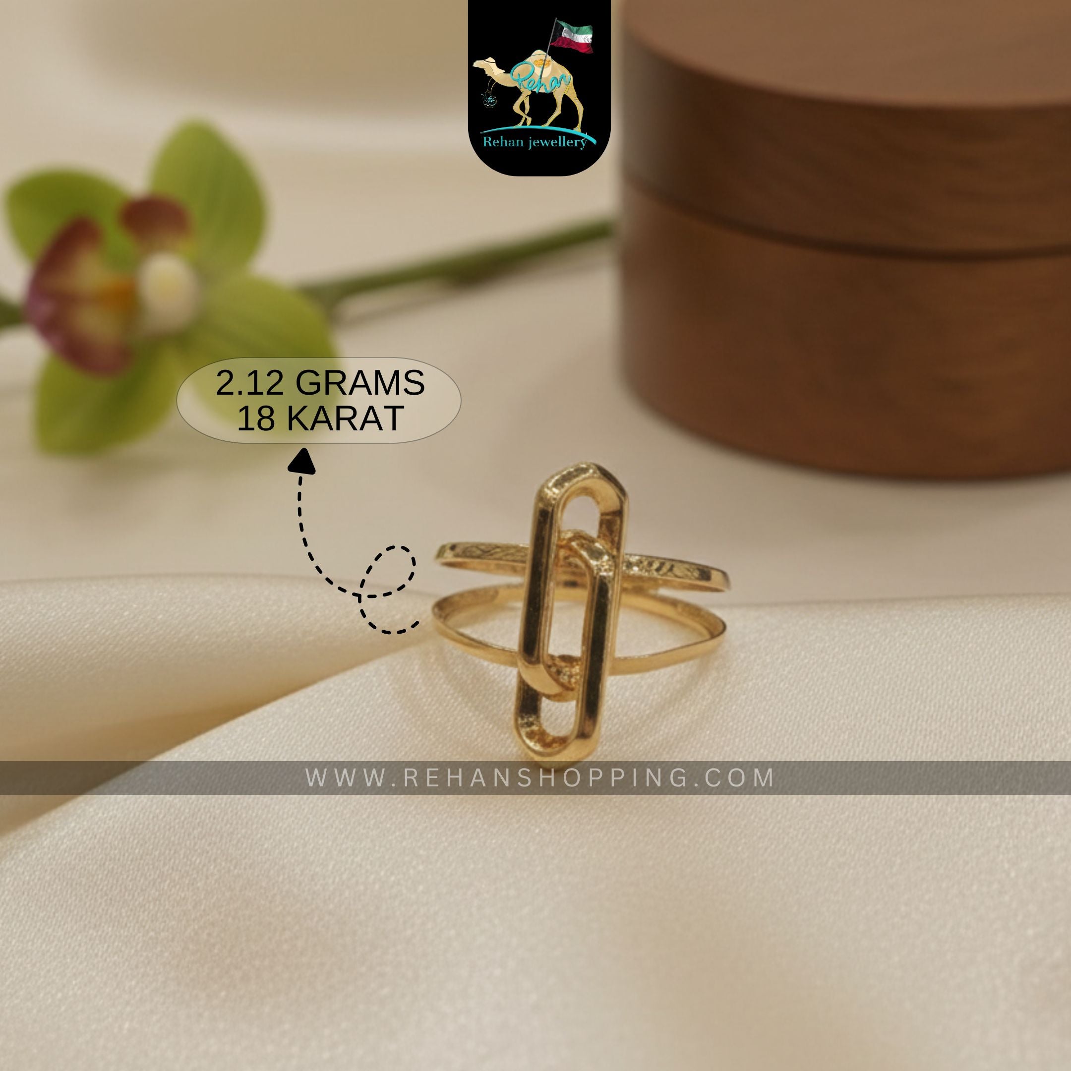Elevate your everyday elegance with this 18K Gold Interlock Chain Ring, weighing 2.12 grams. Featuring a sleek double-band structure with an interlocking link centerpiece, this ring embodies strength, connection, and timeless sophistication.