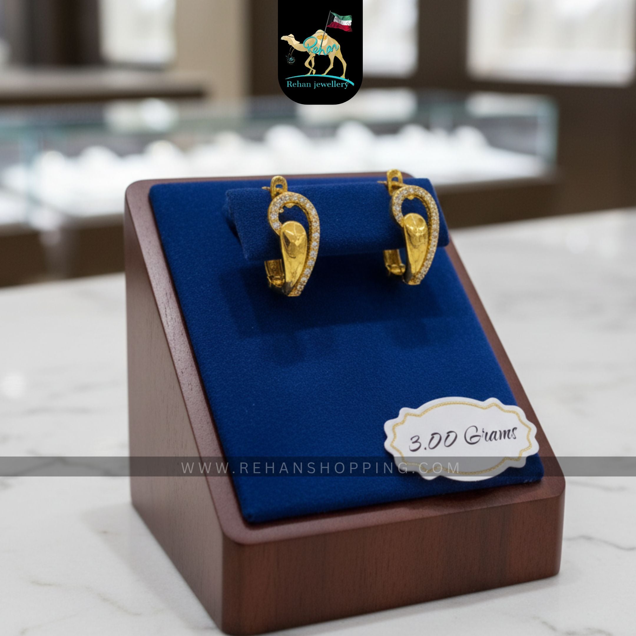 Turn heads with these 21 Karat Gold Artistic Diamond Stud Earrings from Rehan Jewellery. Weighing 3.00 grams, these earrings feature an elegant artistic swirl design, enhanced with sparkling diamonds for a luxurious finish. Perfect for weddings, parties, or everyday wear, they combine creativity with timeless elegance.