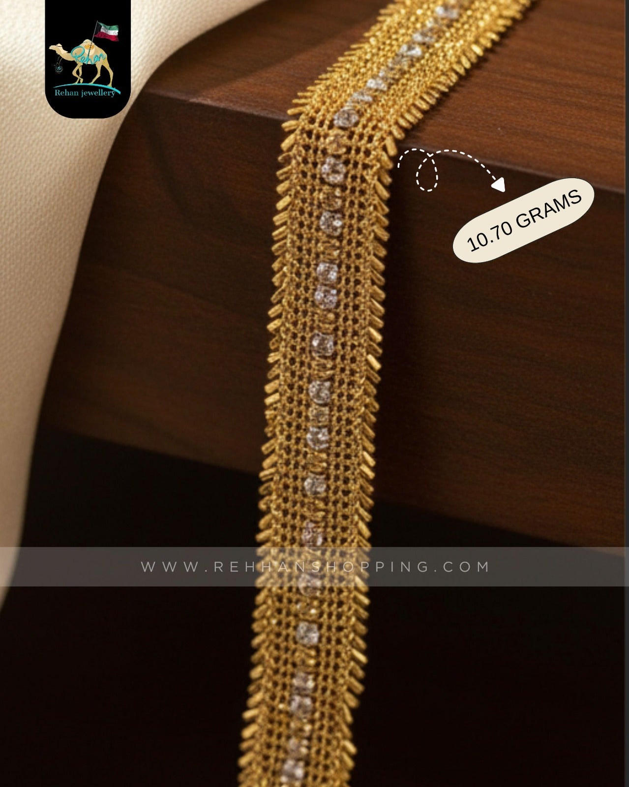 Elevate your jewellery collection with this 18 Karat Gold Diamond-Cut Mesh Bracelet from Rehan Jewellery. Weighing 10.70 grams, this luxurious bracelet features a wide mesh design with sparkling diamond-cut detailing at the center, combining elegance with bold sophistication. Perfect for weddings, parties, and festive occasions, it’s a true statement piece of timeless craftsmanship.