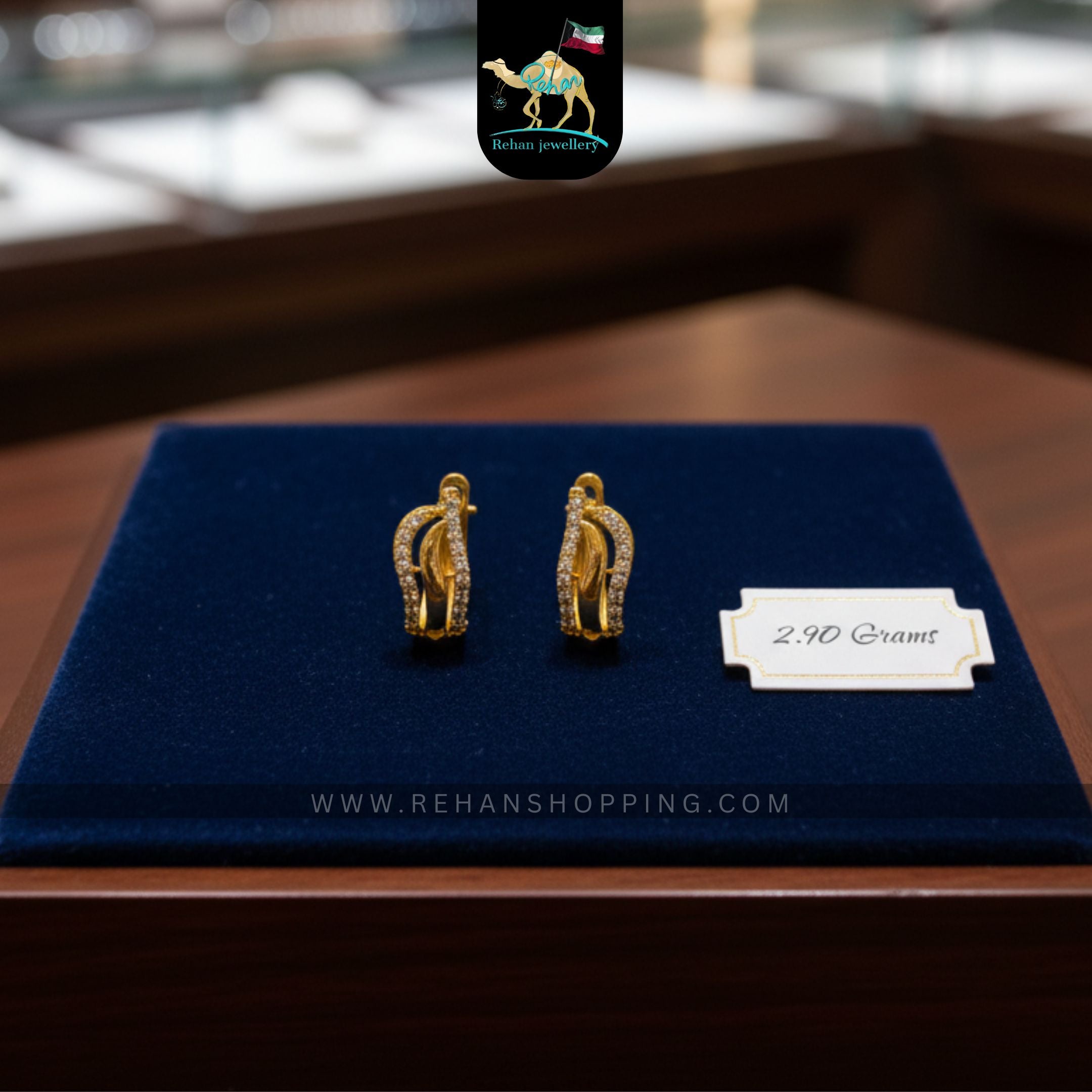 Add a touch of sophistication with these 21 Karat Gold Double-Layer Diamond Stud Earrings from Rehan Jewellery. Weighing 2.90 grams, these earrings feature a stunning layered gold design, outlined with sparkling diamond accents for maximum brilliance. Perfect for weddings, parties, or elegant daily wear, they are a timeless addition to your fine jewellery collection.