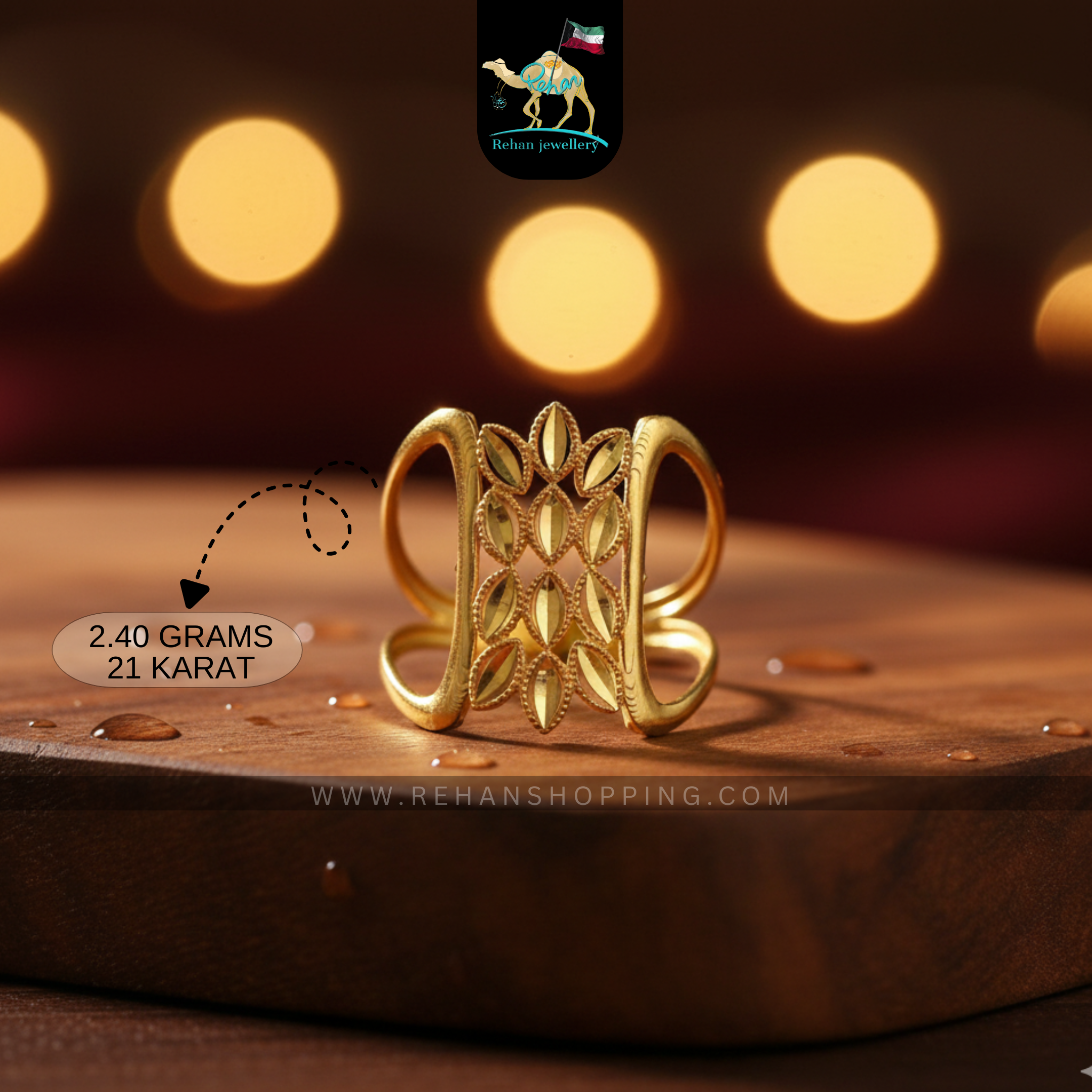 21K Gold Geometric Leaf Ring – 2.40 Grams | Rehan Jewellery Kuwait