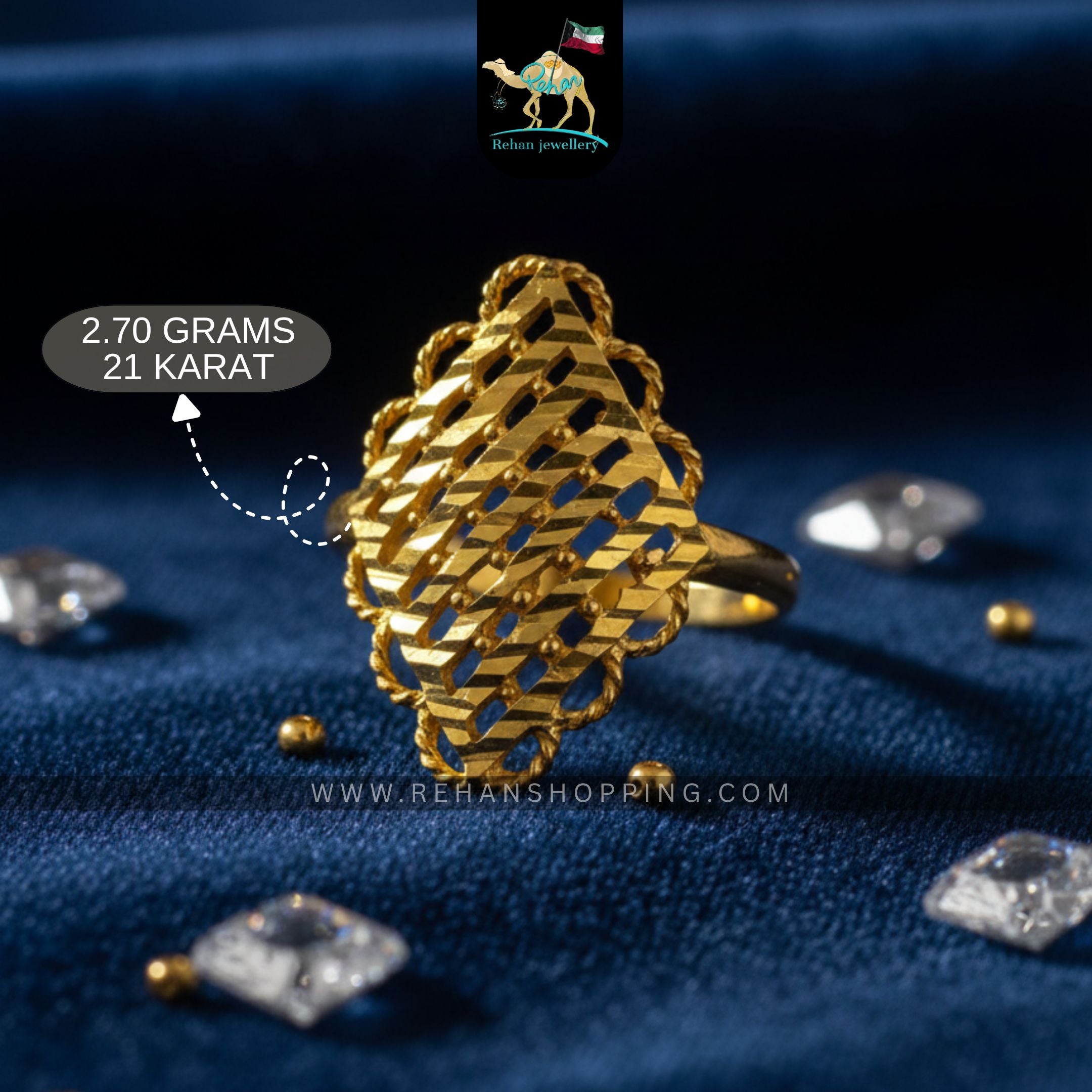 21K Gold Lattice Pattern Ring – 2.70 Grams | Handcrafted Statement Gold Ring for Women
