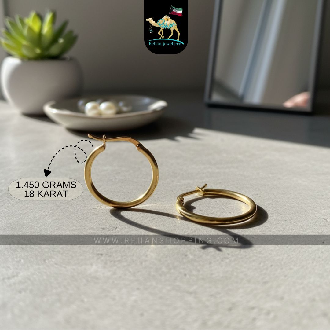 Keep it minimal yet elegant with these 18 Karat Gold Lightweight Hoop Earrings from Rehan Jewellery. Weighing just 1.450 grams, these hoops are perfect for daily wear, offering comfort and timeless sophistication. A versatile accessory that pairs beautifully with any outfit, making them an essential in your gold jewellery collection.