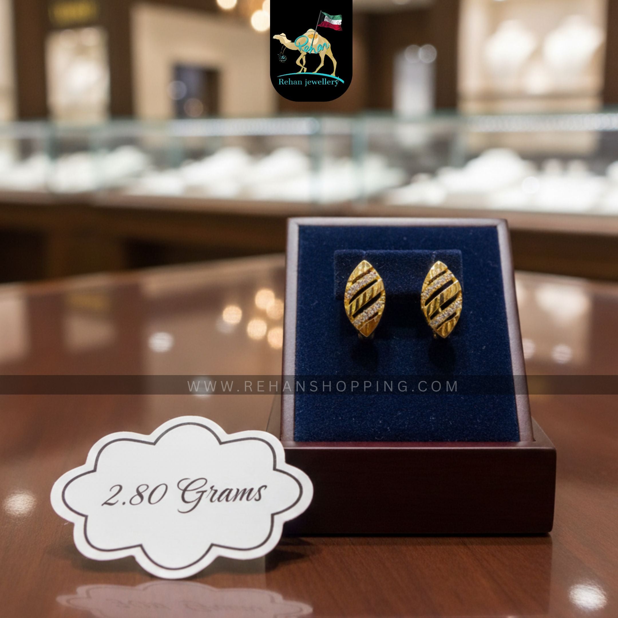 Add timeless elegance to your collection with these 21 Karat Gold Textured Stud Earrings from Rehan Jewellery. Weighing 2.80 grams, these beautifully designed studs feature a textured pattern with a touch of sparkle, making them perfect for both everyday wear and special occasions. A sophisticated choice for gifting or personal style.