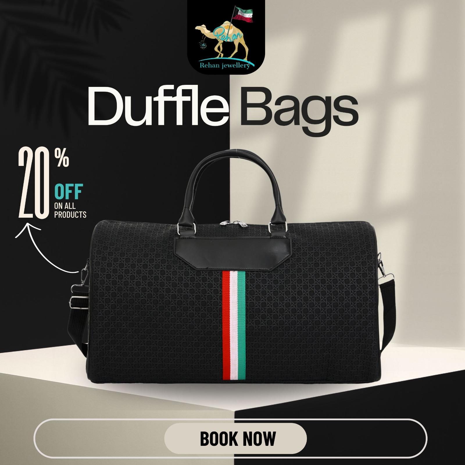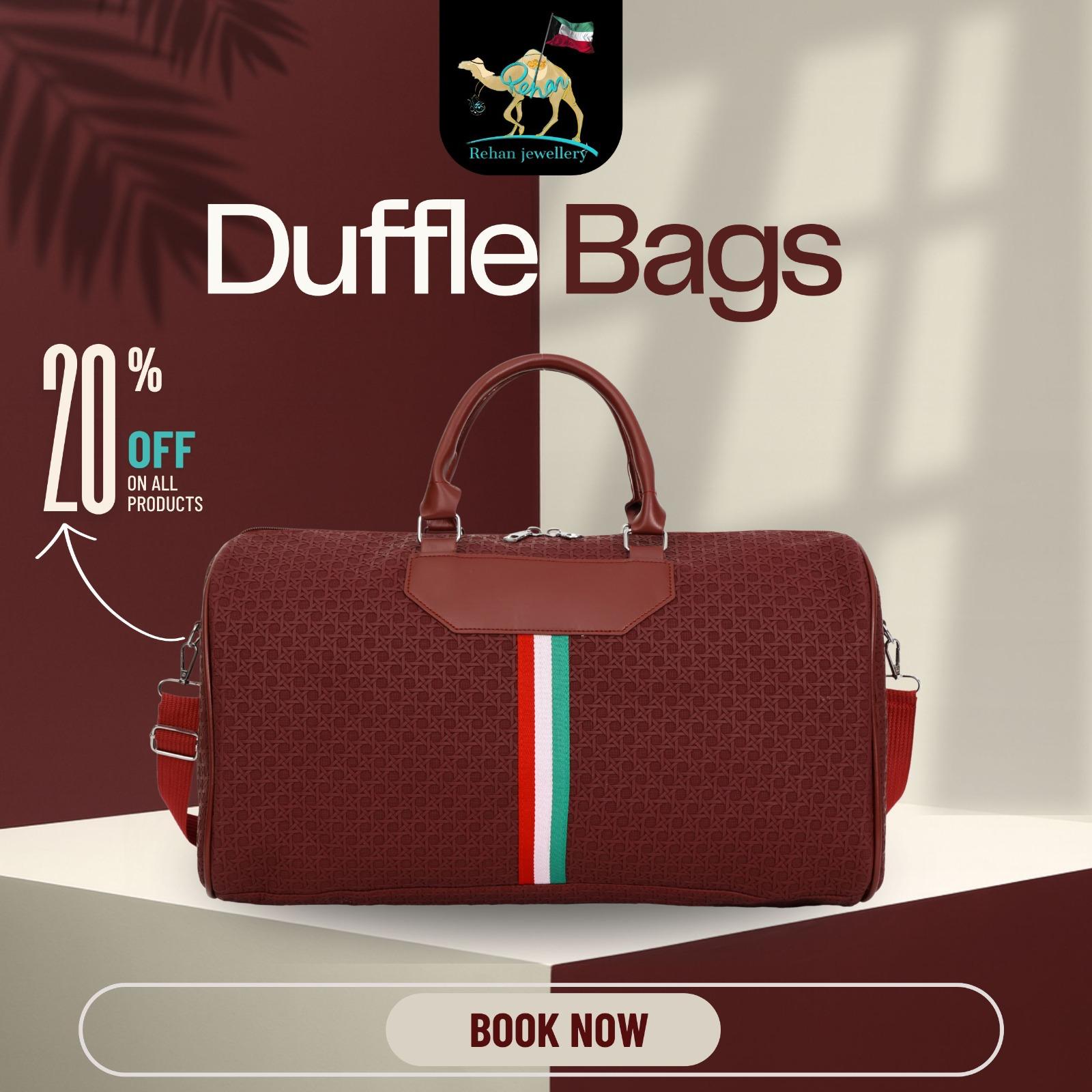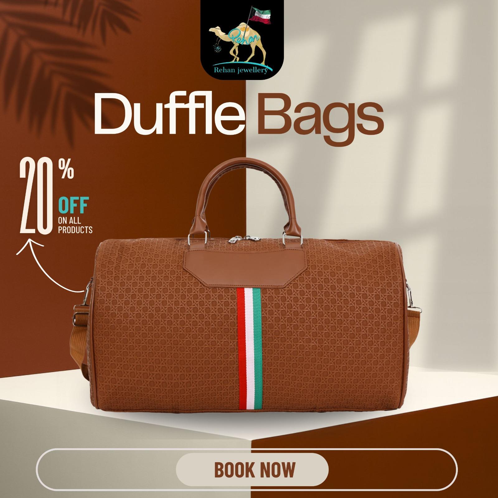 Add a touch of class to your journey with Rehan Shopping’s Duffle Bag Collection — crafted for those who travel in style.