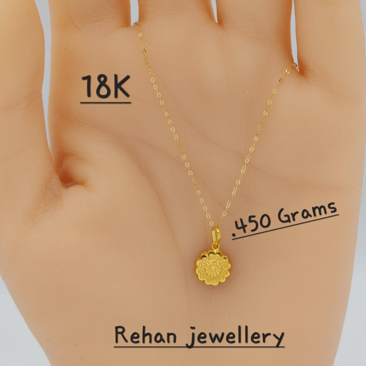 Let your elegance shine with this 18K Gold Pendant Necklace, exclusively by Rehan Jewellers. Featuring a sleek, minimal design with a glowing pendant centerpiece, it’s a stunning gift for her—or a treat for yourself.