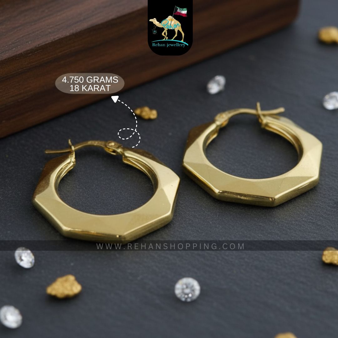 18K Gold Geometric Hoop Earrings – 4.20 Grams | Rehan Jewellery Kuwait