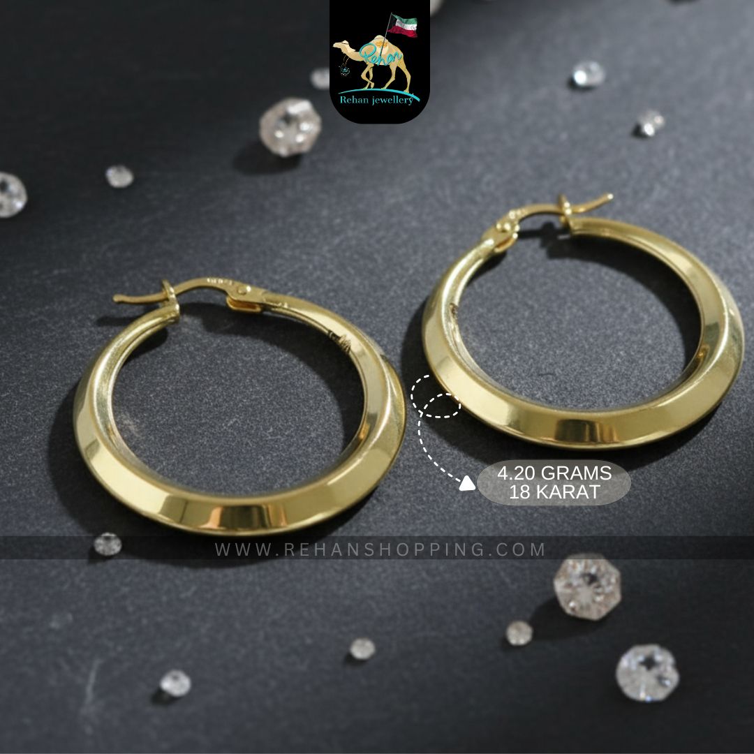18K Gold Hoop Earrings – Lightweight 4.20 Grams | Rehan Jewellery Kuwait