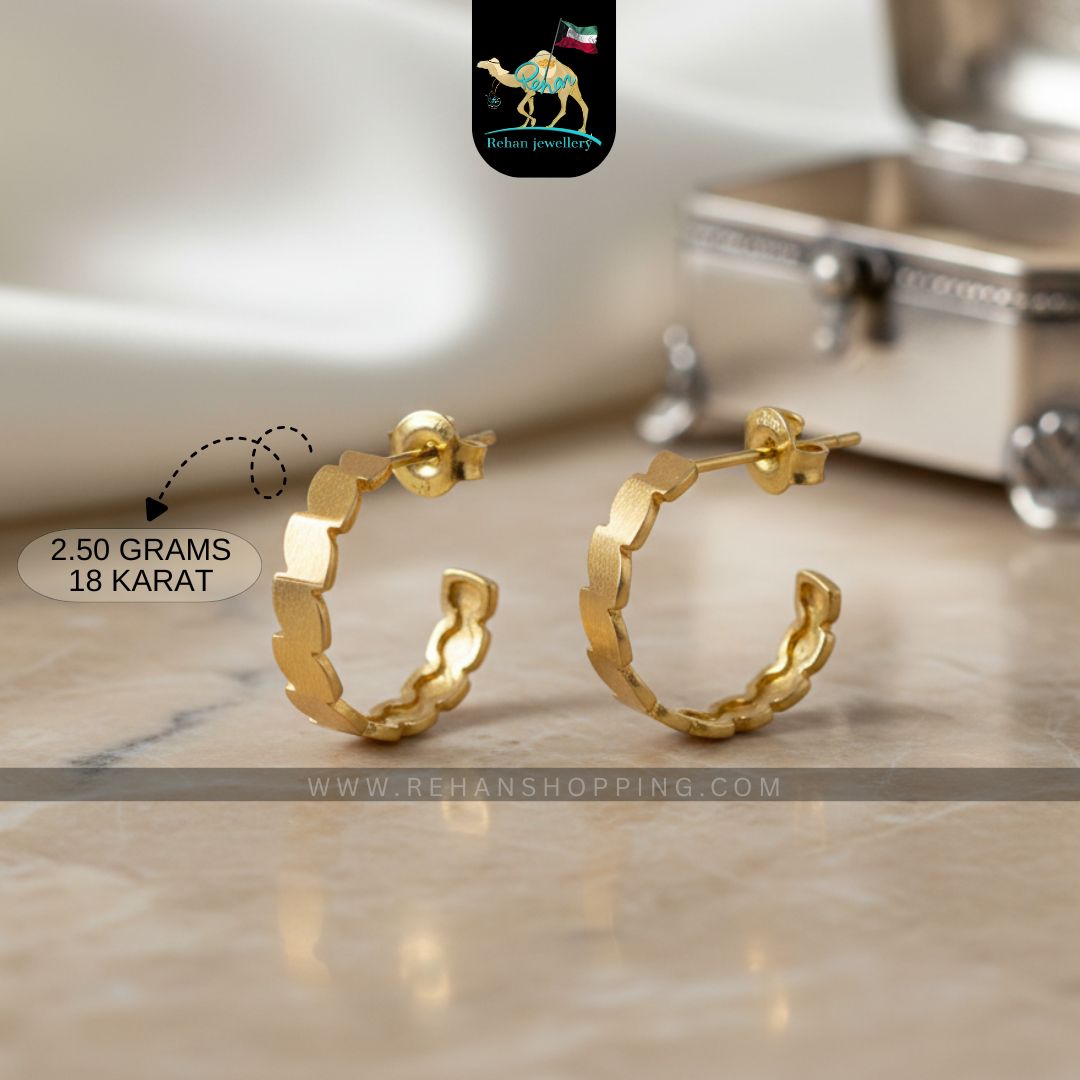 18K Gold Scalloped Hoop Earrings – 2.50 Grams | Rehan Jewellery Kuwait