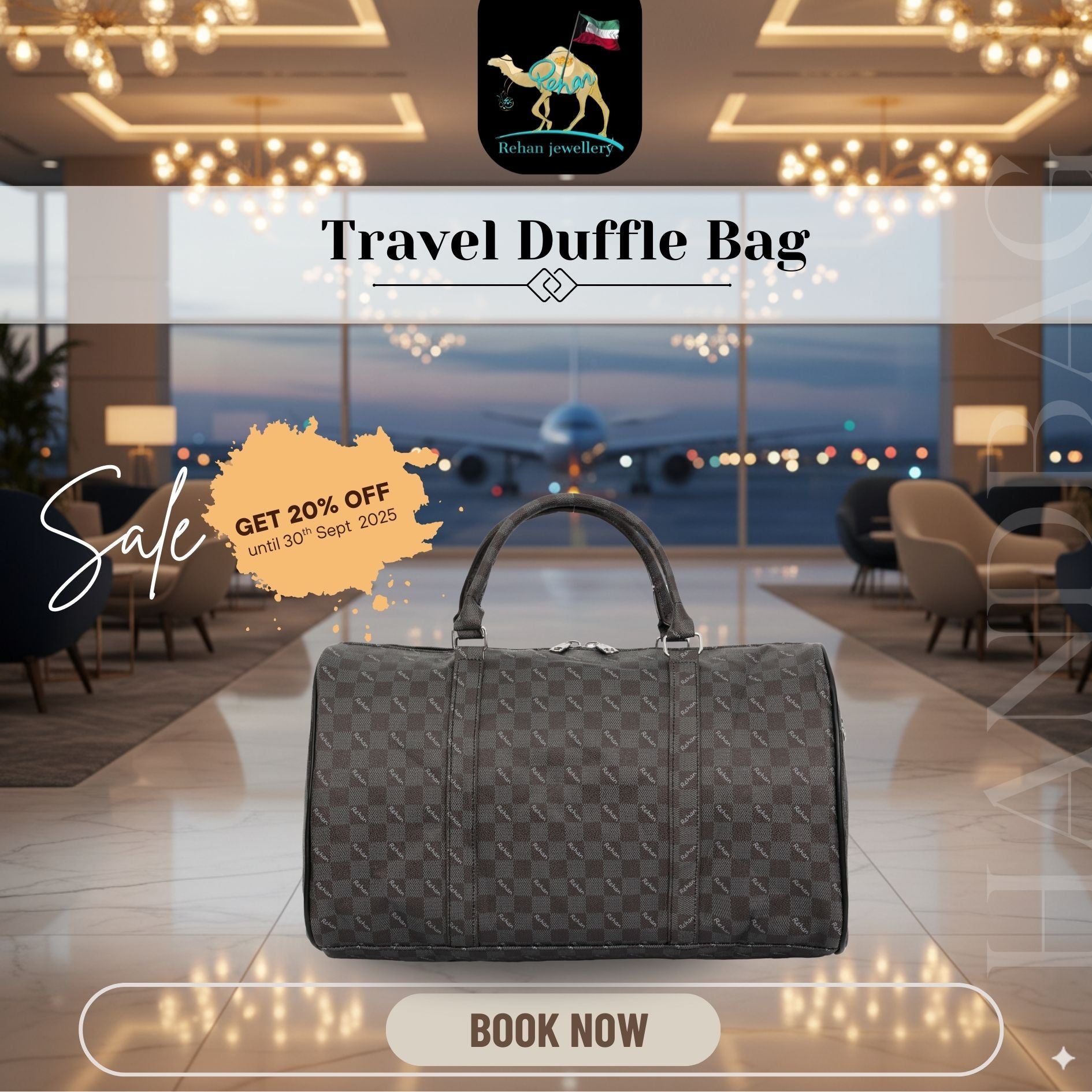 Upgrade your travel style with the Luxury Travel Duffle Bag from Rehan Shopping. Designed with a premium monogram pattern and durable material, this duffle is perfect for weekend getaways, business trips, or everyday use. Its spacious interior, sturdy handles, and detachable shoulder strap provide both comfort and convenience.