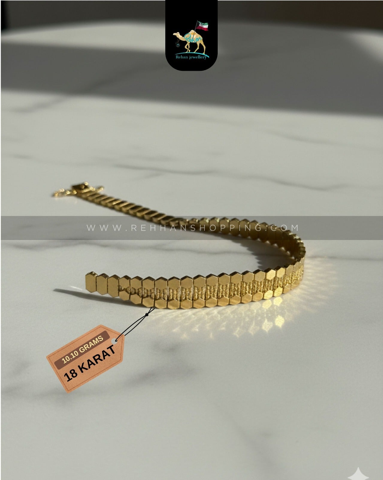 Elevate your jewellery collection with this 18 Karat Gold Hexagon Link Bracelet from Rehan Jewellery. Weighing 10.10 grams, this bold bracelet features a unique hexagon-patterned link design with a polished and textured finish, offering a perfect balance of strength, style, and luxury. Ideal for weddings, parties, or everyday elegance, this bracelet is a timeless statement piece.