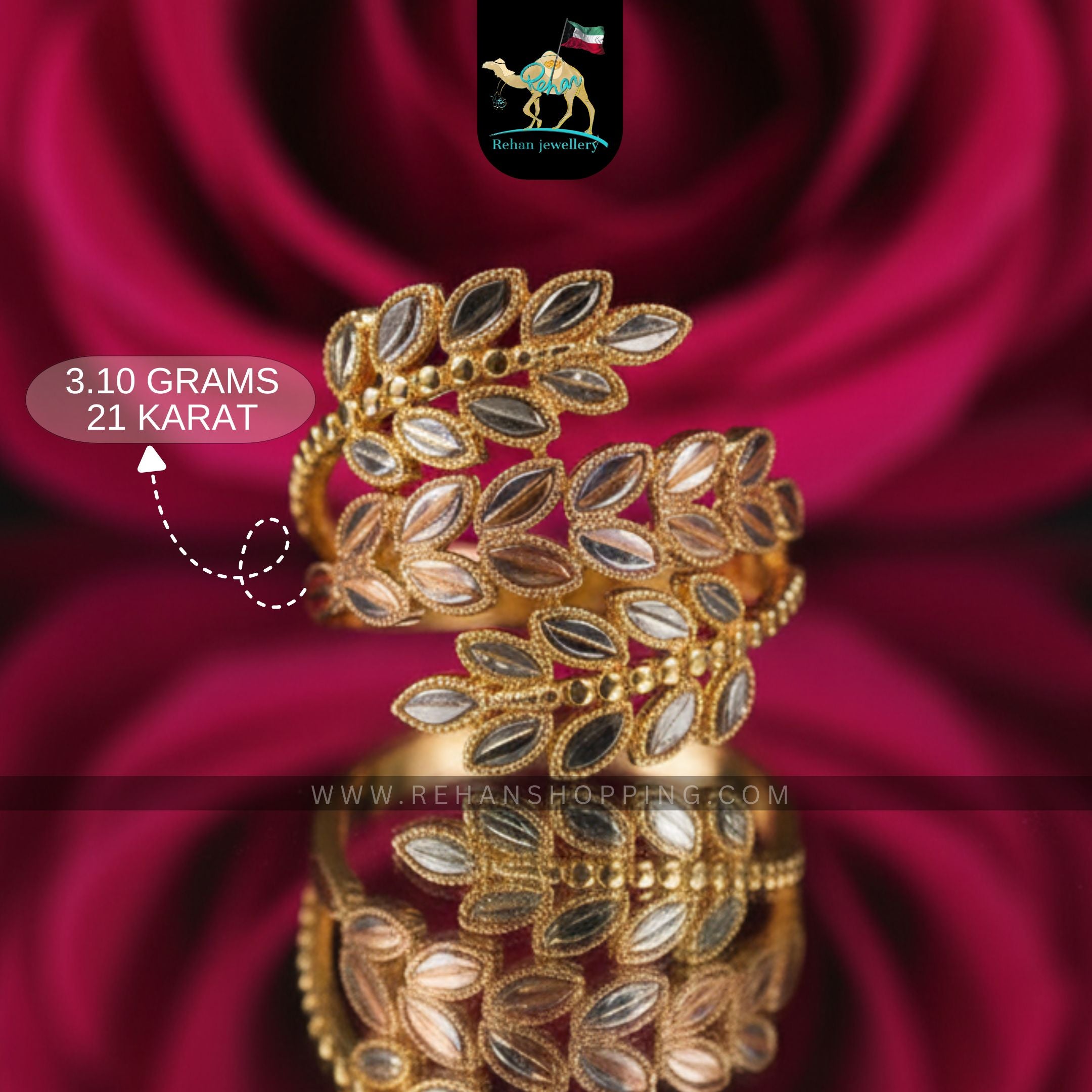 Celebrate timeless elegance with this 21K Gold Leaf Pattern Ring by Rehan Jewellery Kuwait.