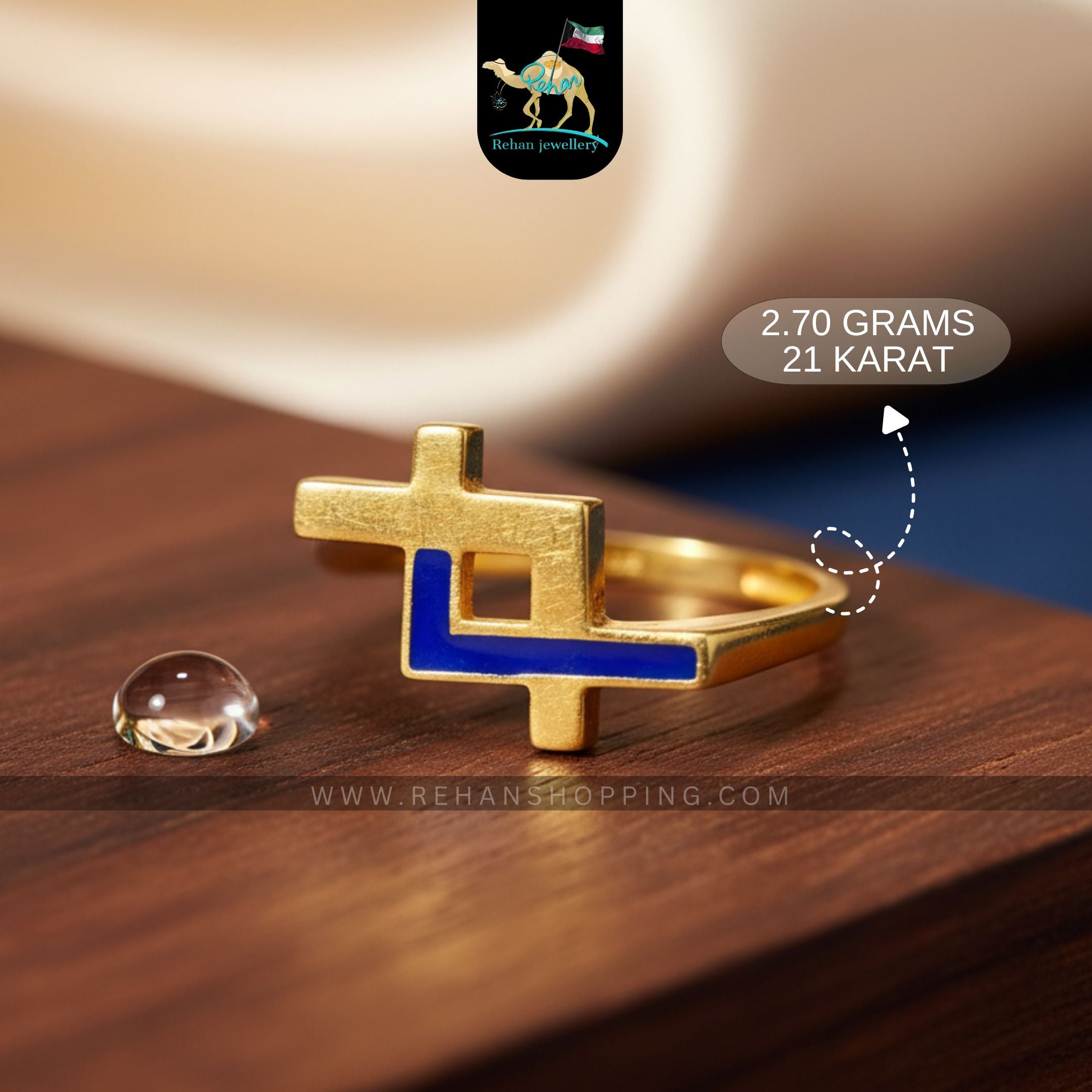 Discover the charm of contemporary elegance with this 21K Gold Modern Geometric Blue Enamel Ring by Rehan Jewellery.