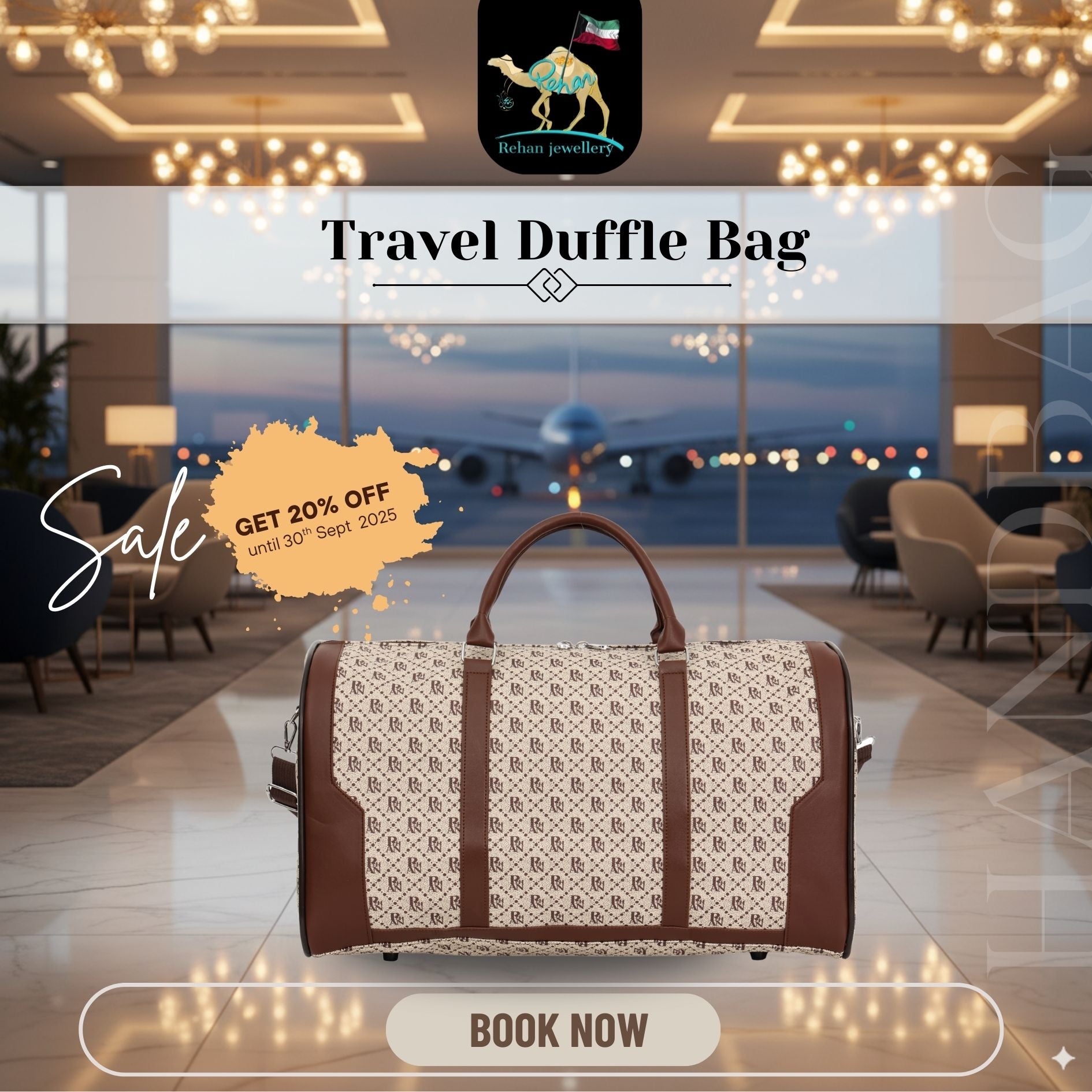 Upgrade your travel style with the Luxury Travel Duffle Bag from Rehan Shopping. Designed with a premium monogram pattern and durable material, this duffle is perfect for weekend getaways, business trips, or everyday use. Its spacious interior, sturdy handles, and detachable shoulder strap provide both comfort and convenience.