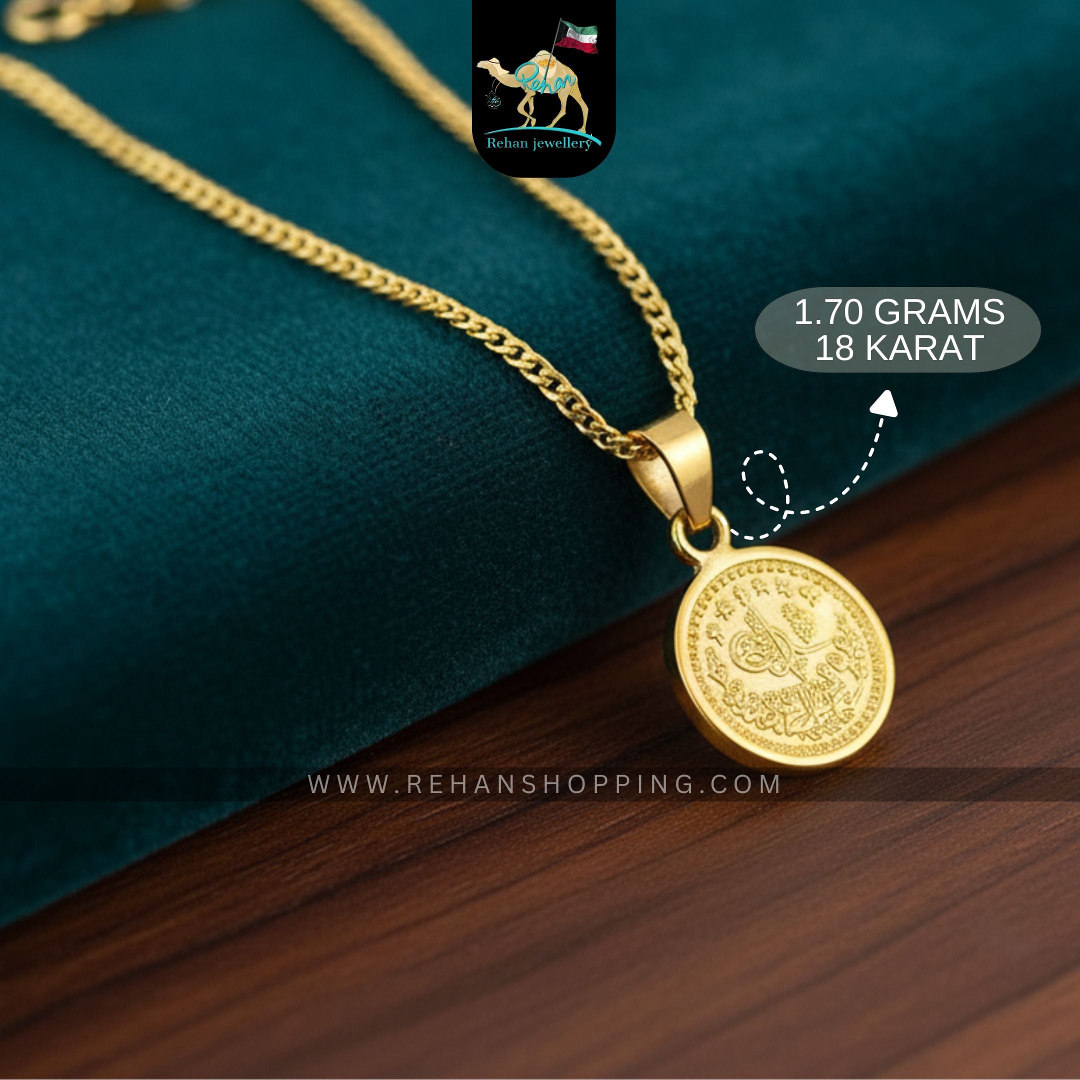 Add a royal touch to your collection with this exquisite 18K Gold Ottoman Coin Pendant Necklace, weighing 1.70 grams. Crafted from pure 18K gold, this pendant embodies elegance, heritage, and timeless artistry.