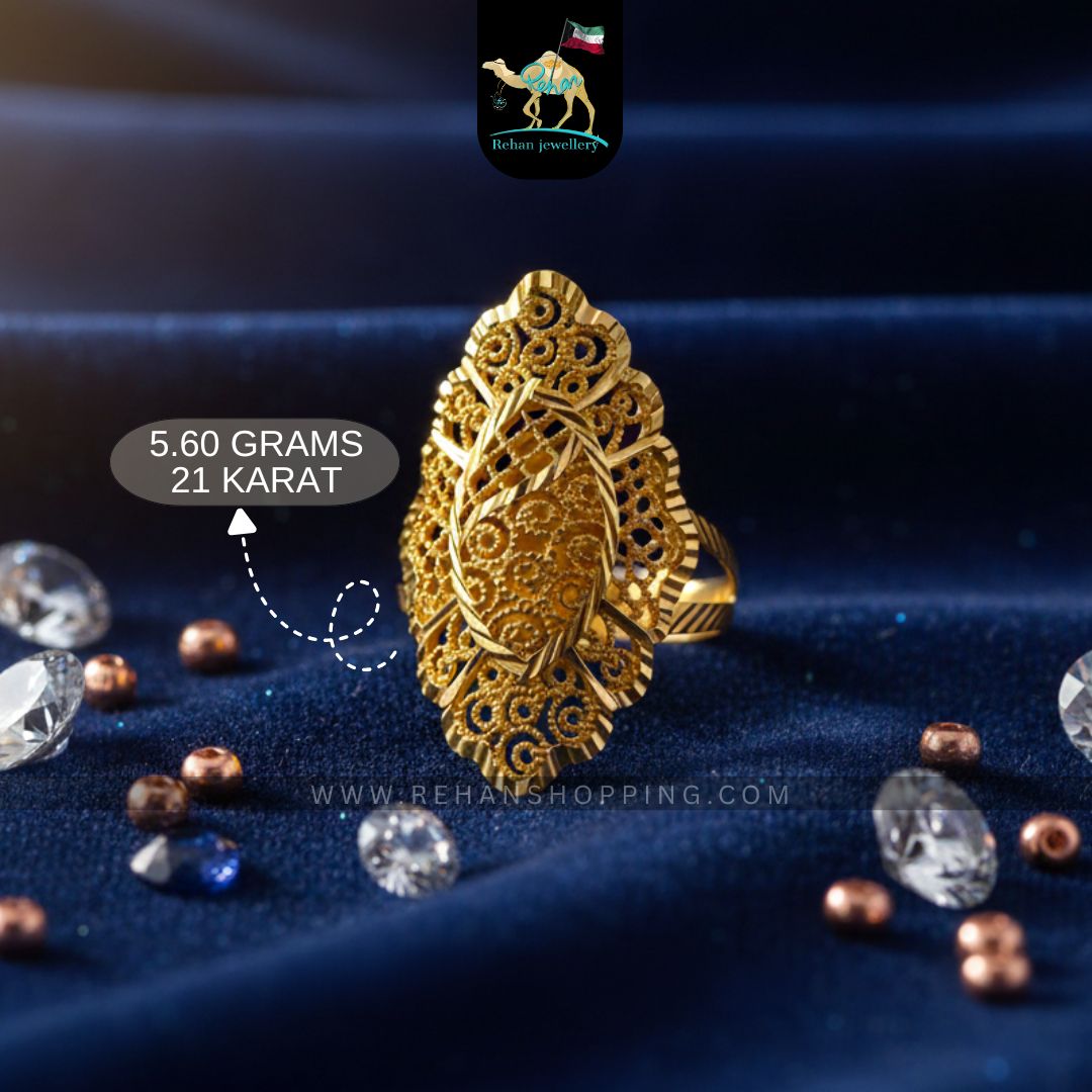 Elevate your elegance with this exquisite 21K Gold Filigree Statement Ring, weighing 5.6 grams. Crafted with delicate artistry and intricate filigree detailing, this bold piece is a timeless symbol of luxury and craftsmanship. Perfect for weddings, festive occasions, or formal gatherings, it adds a regal touch to any outfit.