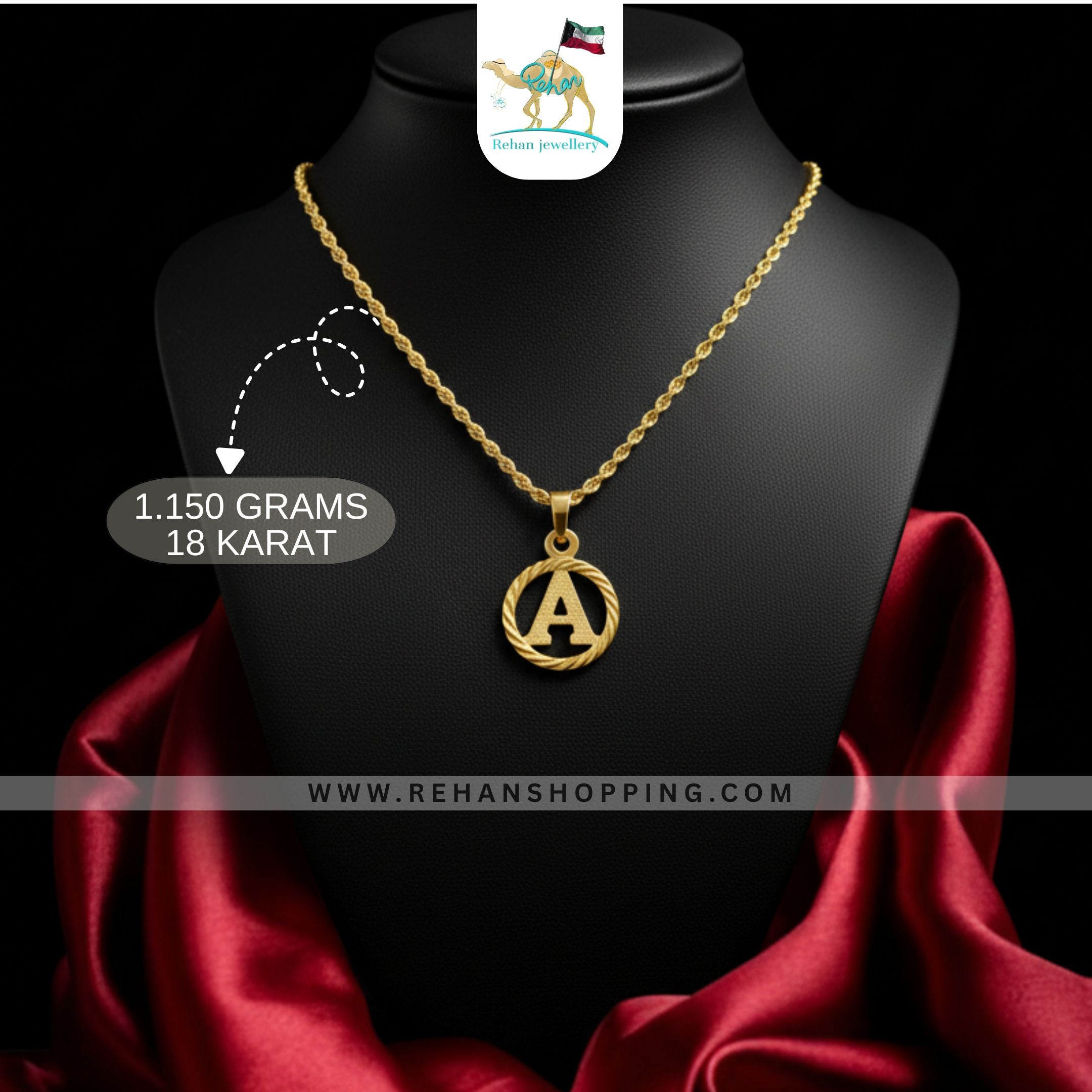 Make your style personal and elegant with this 18K Gold Alphabet “A” Pendant Necklace, weighing 1.15 grams. This minimal yet luxurious design features a bold letter “A” enclosed in a textured round frame, crafted from pure 18K gold.