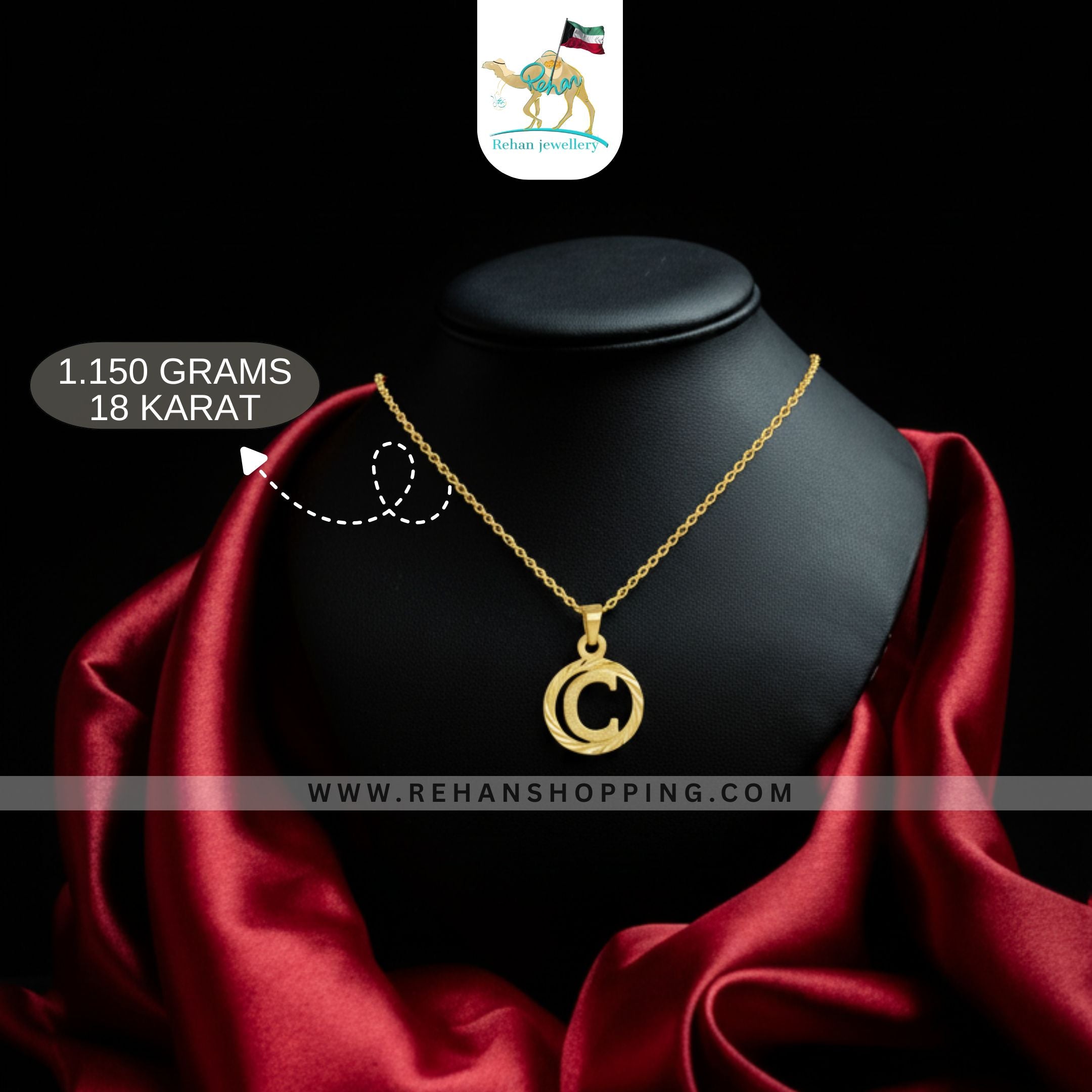 Make your style personal and elegant with this 18K Gold Alphabet “C” Pendant Necklace, weighing 1.15 grams. This minimal yet luxurious design features a bold letter “A” enclosed in a textured round frame, crafted from pure 18K gold.