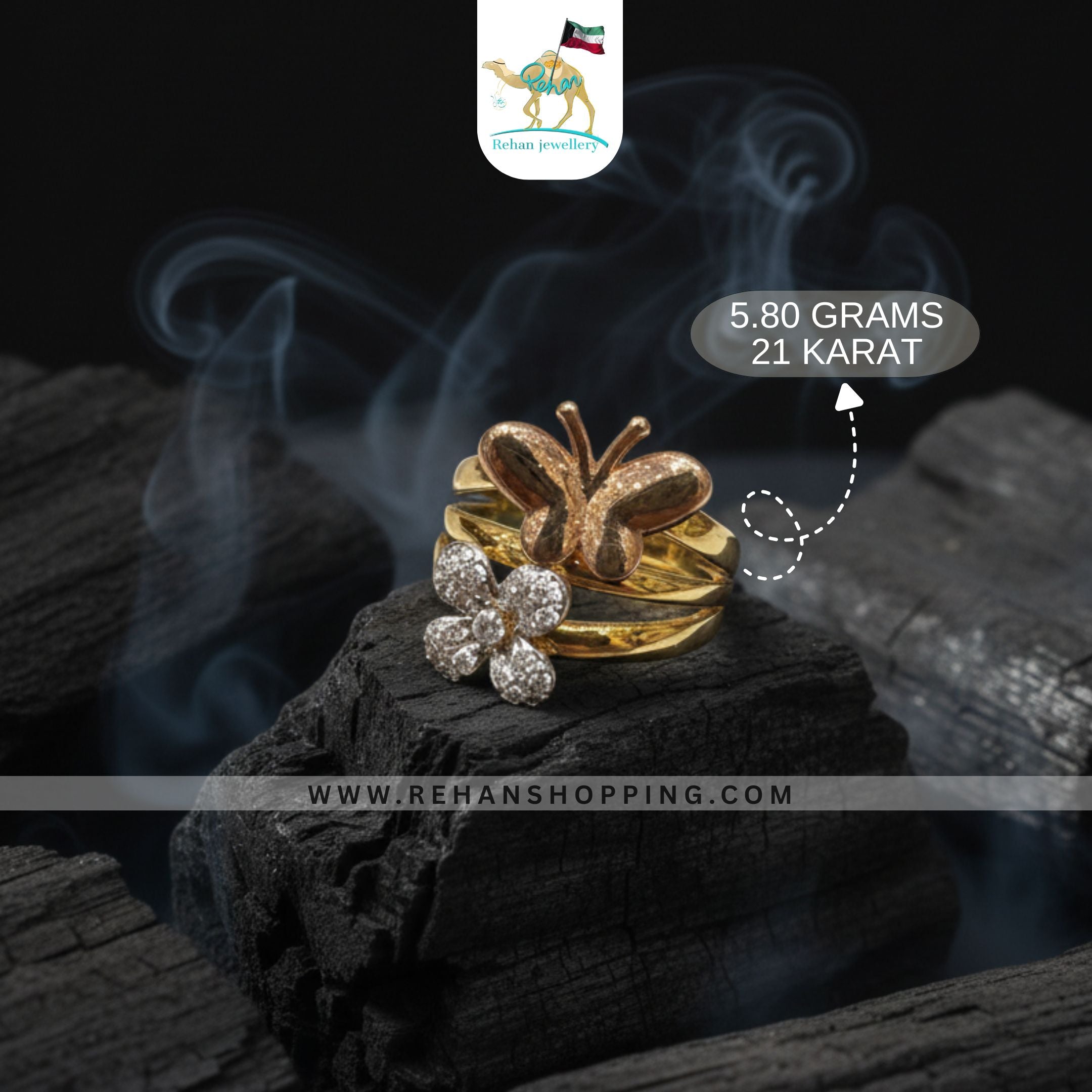 Turn every glance into admiration with this 21K Gold Butterfly & Floral Diamond Ring from Rehan Jewellery Kuwait.