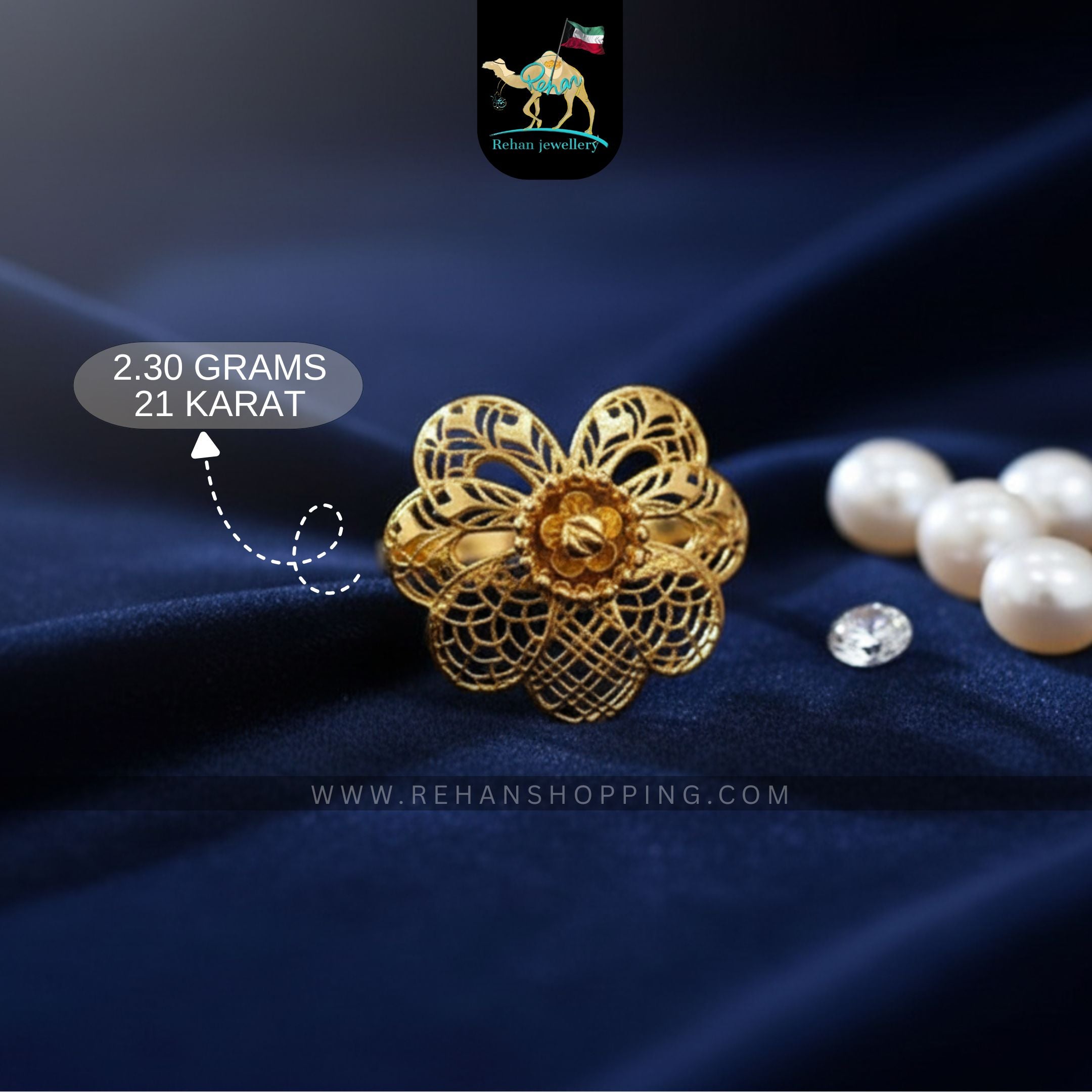 Step into luxury with this 21K Gold Filigree Floral Ring by Rehan Jewellery Kuwait.