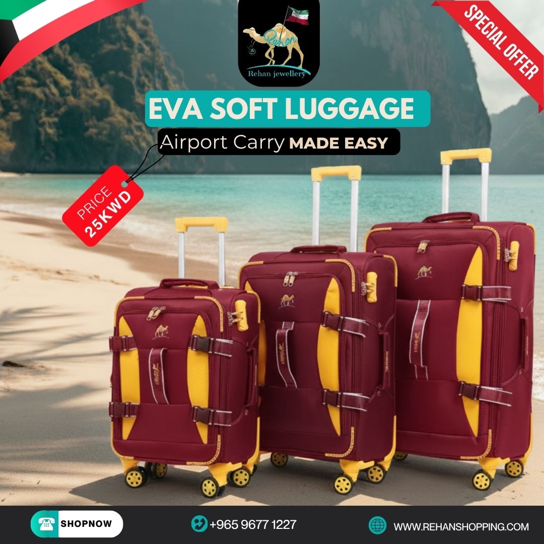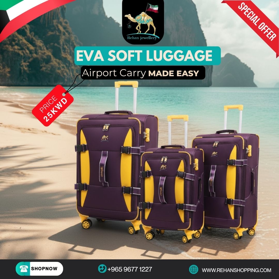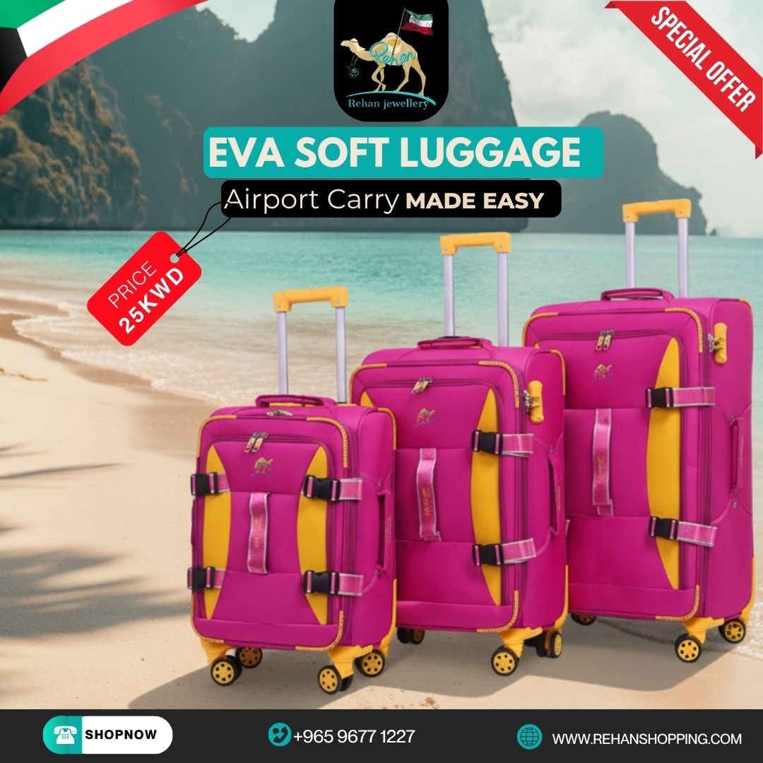 Travel smarter with the EVA Soft Luggage Set by Rehan Shopping, designed for comfort, durability, and effortless mobility.
